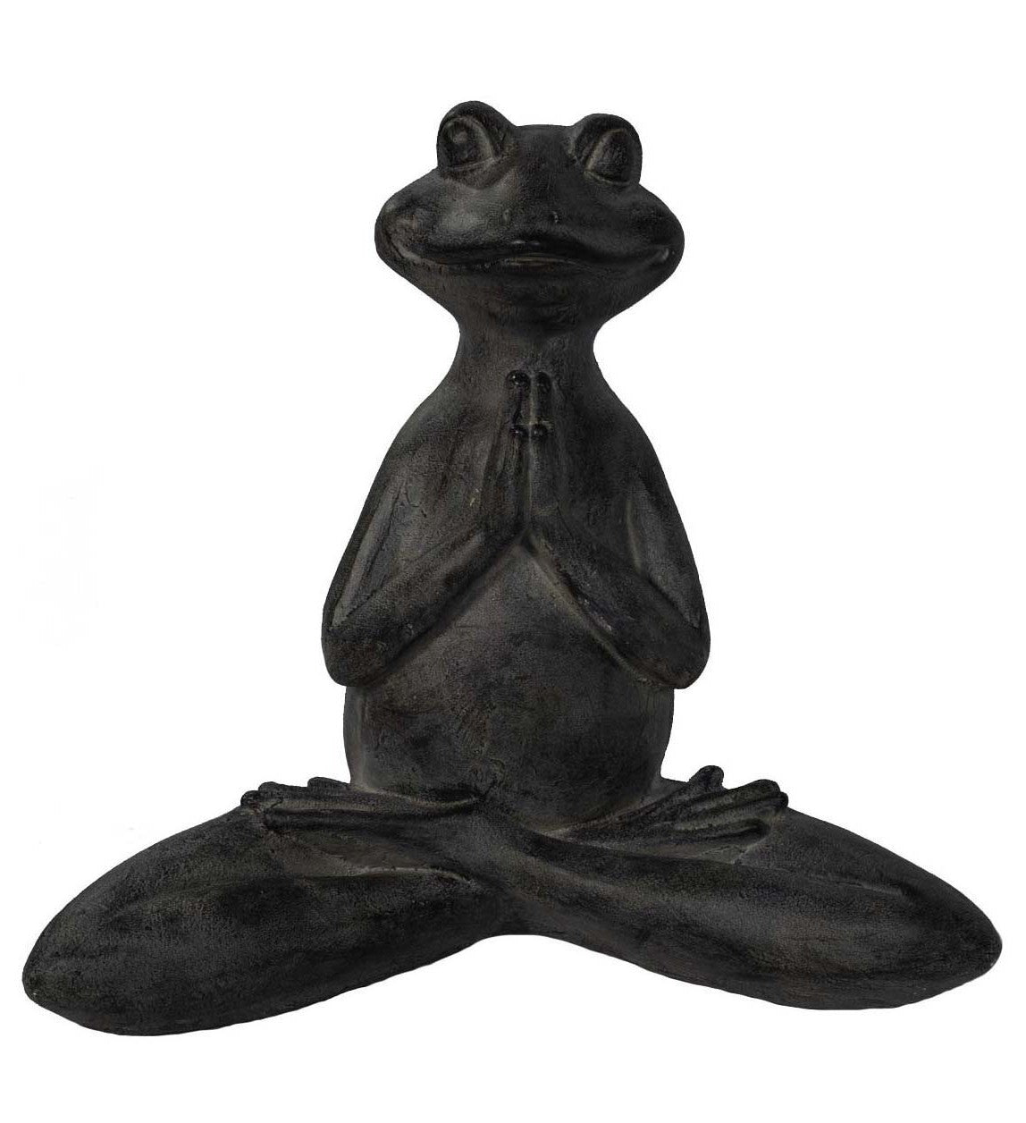 Bring a sense of calm and character to your space with this Black Zen Frog Indoor Outdoor Statue. Crafted from durable two-tone polyresin, this sculpture can be used indoors or out. The material looks like aged concrete stone with a speckle to it, but the quality construction polyresin is lighter, more durable, and built to last for years on end. A unique decorative addition to your living room, bedroom, front porch, backyard, or garden landscaping. 16.5" x 17.7" x 11".