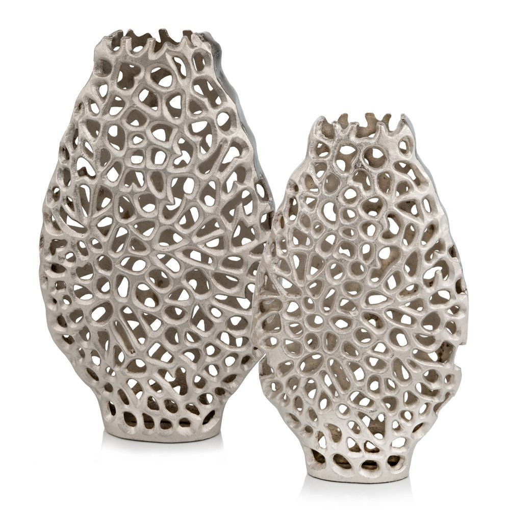 The Large Oval Table Vase makes a Statement on a Shelf or Table. Natural Open Unique Design and Shiny Nickel Finish make this Vase a winner in any Contemporary Decor.