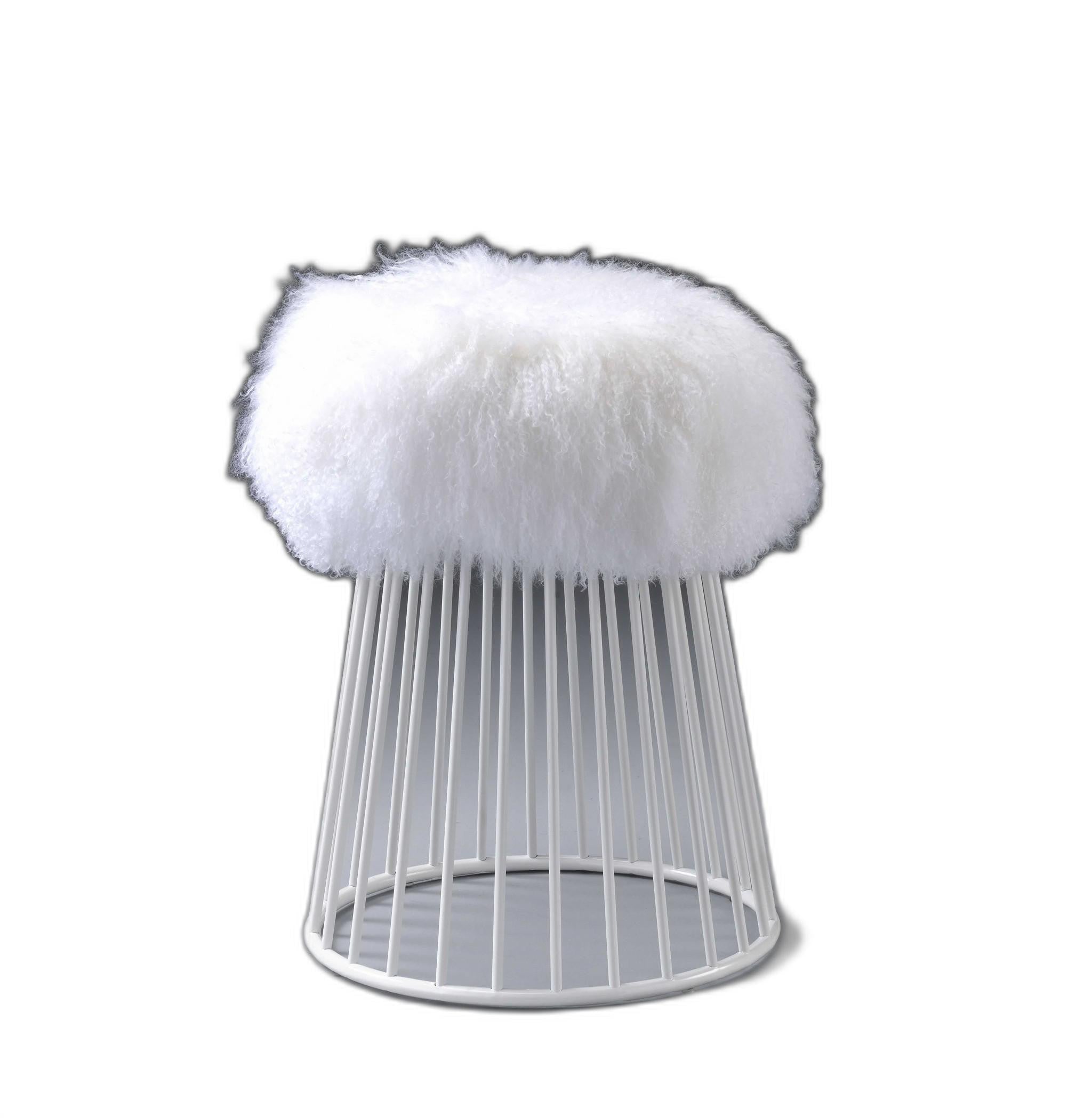 Allow this exquisite masterpiece make clear and loud luxury statement in your home. This ottoman is constructed with high end design and style that will transform the look and feel of any home setting. Featuring white padded Tibet wool cushion seat, this piece is truly designed for your maximum comfort and relaxation. With the top cushion top resting prominently on the metal tube cone base, we back our ottoman to bring enduring style and beauty to your living room.
