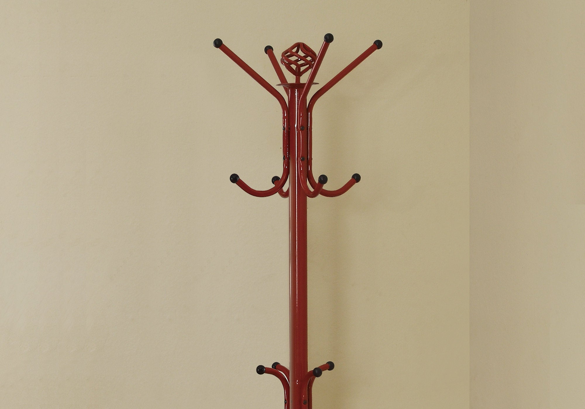 Give guests a warm welcome when you place this contemporary style metal coat rack in your hall or entryway, or make the most of a compact space by tucking one into a corner of your living room, bedroom, mudroom, or home office. The bold red finish with a