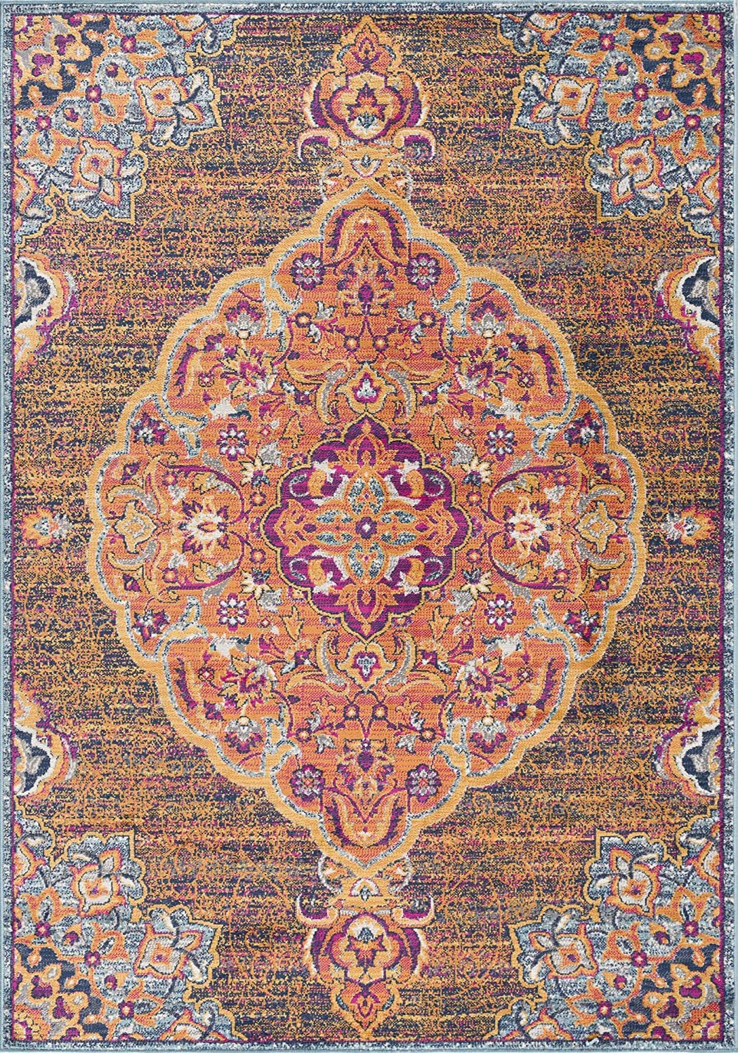 Encouraging an essence of rich traditional styling, this Rustic Orange Medallion Runner Rug exhibits a blend of saturated hues to uphold a sense of extravagance into your living space. The exaggerated medallion in the center is intricately decorated with rustic orange, gold, magenta, and tints of blue on a multi-toned base for visual harmony. Ideal for indoor areas with heavy foot traffic, this rug is made in Turkey with 100% polypropylene that speaks of its durability and stain resistance to last long and retain its pristine look for ages. The low pile construction adds to a refined look offering a smooth surface texture with a lustrous effect that feels as luxurious as it looks. Flaunting warm-toned hues and traditional patterns, this alluring runner rug will add a sense of energy and vibrance to your traditional home. 144” x 27” x 0.4”