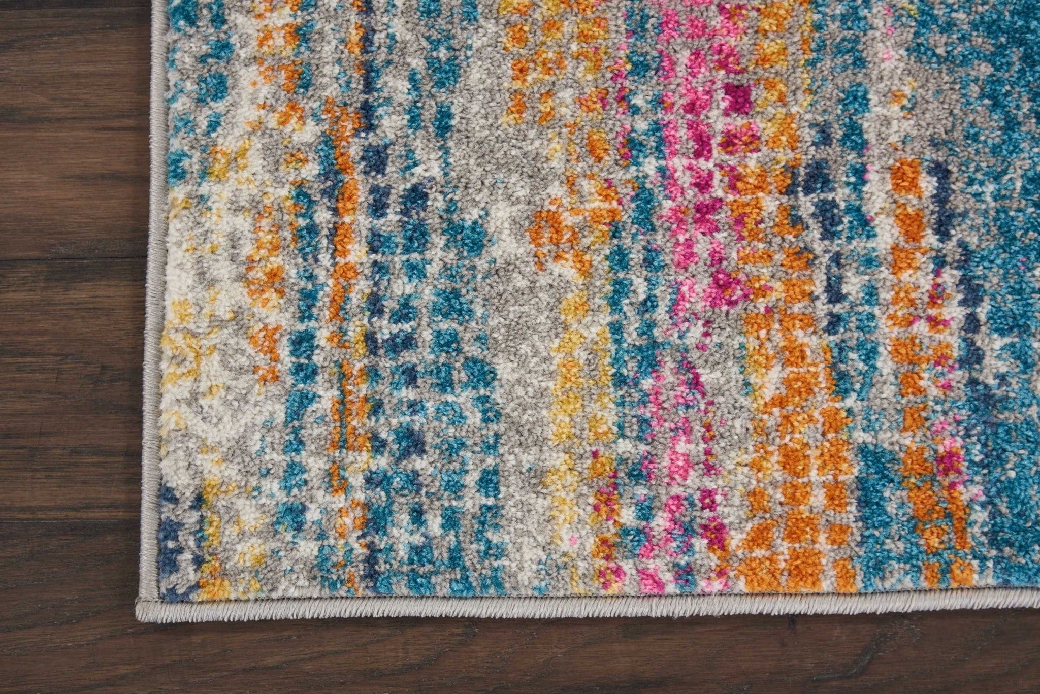 A fan of vivid colors and progressive decor? Then this Gray Colorful Abstract Stripes Scatter Rug is a perfect accent to ensure that every inch of your living space flaunts class and ingenuity. The distressed brushstroke patterns in rich and vibrant shades of blue, magenta, orange, and ivory create an abstract work of art to allure the gazes of your visitors. Made in Turkey with 100% polypropylene, this rug ensures the brilliant quality and texture to last for years and stand up to the messes of indoor areas with moderate foot traffic. The inherently stain-resistant property makes it even easier to clean. Advanced power-loomed construction and the soft-pile texture adds to its surface interest for a rich and luxurious feel on the touch. The intricacies in the details of this unique scatter rug make it a perfect centerpiece to transform your living room with its artistic values. 22" x 34"