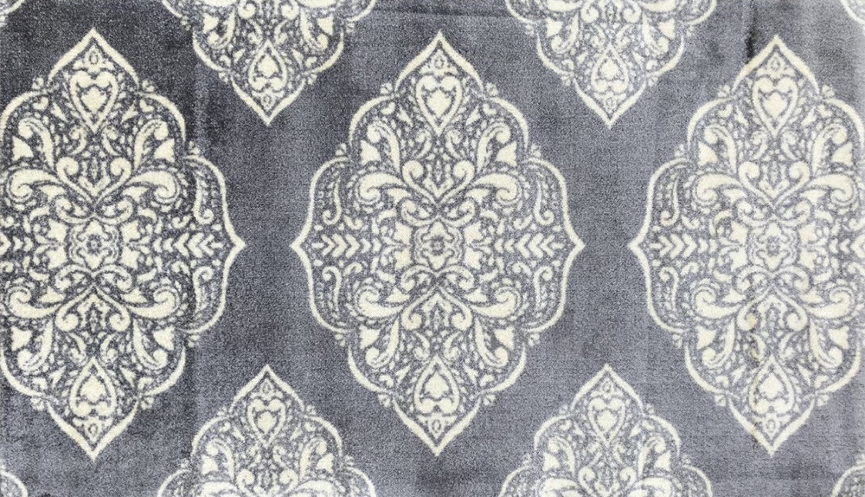 This low profile Gray and Ivory Scallop Medallion Washable Floor Mat is a game changer.A fade resistant, slightly distressed, medallion design with netural shades of silver, gray, and white provides a traditional and timeless look for a mat that is super sturdy and yet can easily be thrown into the washer and dryer to clean. The premier formula rubber backing used makes this nylon rug slip resistantr with no need for an additional pad, and the backing will hold up during the wash and dry! The low profile means it easily fits under doors. Combine fashion and style with real life functionality with this great area rug/door mat. 27.5" x 47" x .3"
