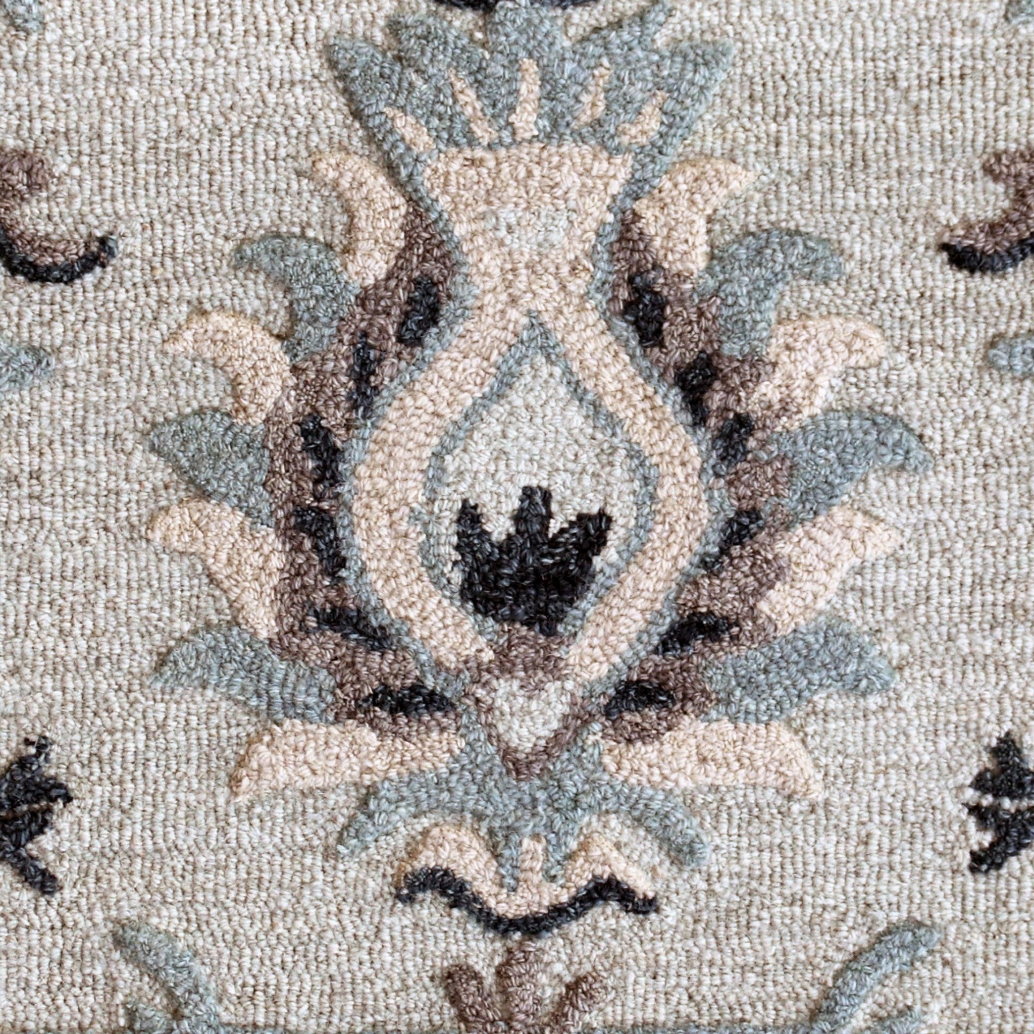 Punctuating an essence of traditional extravagance, this Gray Floral Patterns Hearth Rug will be a stunning addition to any contemporary or traditional living space. The exquisite floral patterns in slate blue, black, and beige create an intriguing piece of art over a dove gray base which is shaped in a semi-circle to fit well in front of a fireplace. Crafted with 100% wool to guarantee strength and sturdiness while protecting the floor and carpeting from fire sparks, hot cinders, and more. Made to last long and stand up the elements of an indoor fireplace, this rug upholds a sophisticated blend of fashion and function. The cool-toned hues with intricate patterns make this hearth rug an alluring accent on the floor. 27” x 46” x 0.5”