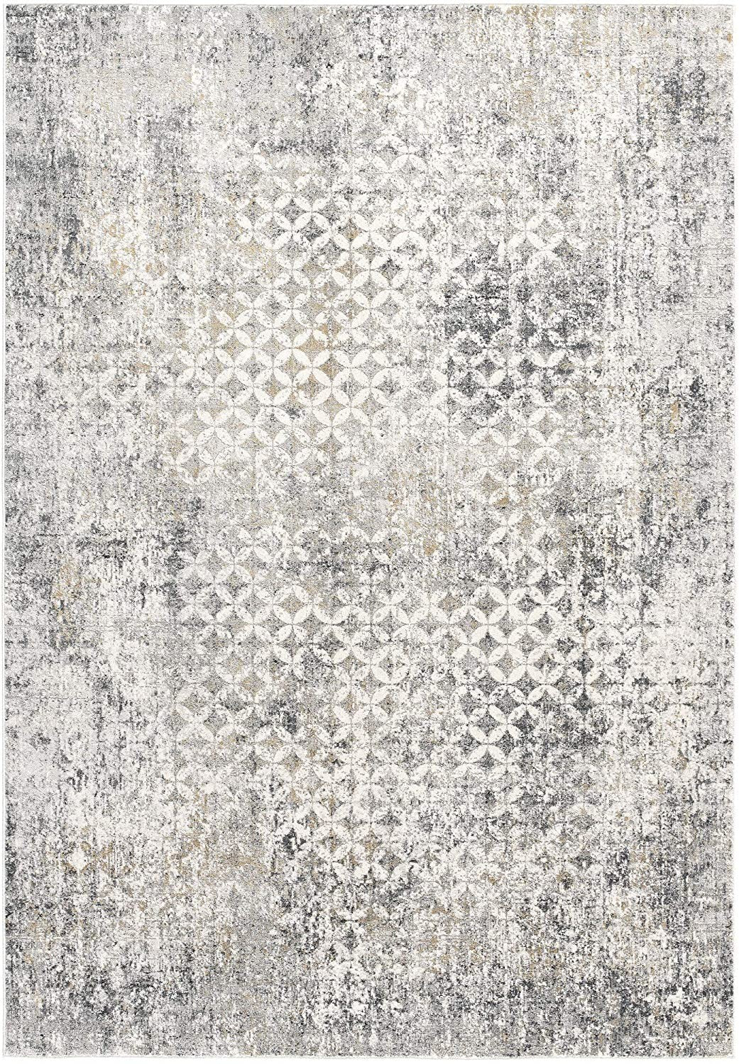 Spruce up the appearance of any hardwood or tile floor with this Gray and Ivory Distressed Area Rug that will add a layer of class and sophistication to your modern interior. The stylish color palette with subtle hues of gray and ivory flaunts distressed design patterns shadowing traces of diamond lattice to create a visually vintage vibe with a contemporary flair. Skilfully crafted by Turkish artisans, this rug is made of a mix of viscose and polyester fibers of premium quality for enhanced durability while the low cut-pile construction creates a textured surface that feels comfortable and luxurious on the touch. The glossy sheen of this rug will stay long for years upon spot cleaning and stay put on the floors without creases and wrinkles. Place this stunning area rug on the entryway or living room and it will serve as a timeless accent for any contemporary or conventional home. 60” x 27” x 0.4”