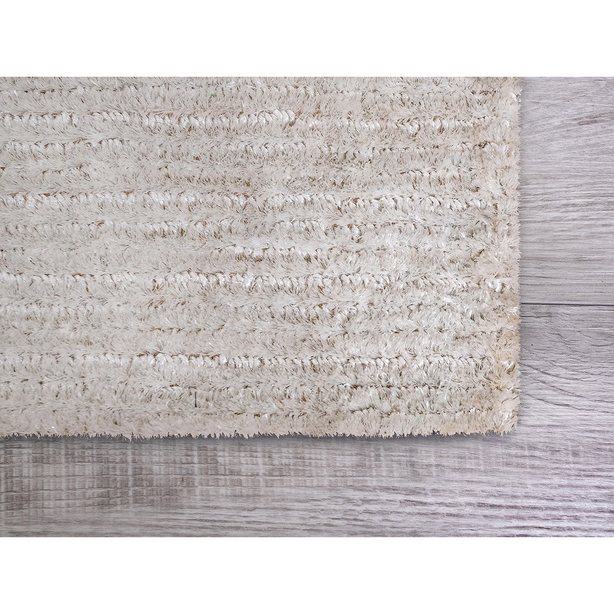 Emphasizing modern sophistication with hints of bohemian flair, this White Modern Shimmery Runner Rug showcases an exemplary fusion of charm and simplicity. The alabaster white undertone of the twisted fibers is highlighted with metallic accents in a thin striped silhouette for a glamorous look. Crafted with care from high-quality polyester that's known for its strength and durability to last for a long time while resisting stains from typical spillage to keep its shape and shine for years to come. The dense and plush pile construction adds to the surface texture and provides a luxurious underfoot for warmth and coziness, making it an excellent pick for indoor areas with moderate foot traffic. The neutral hue and sturdy construction of this runner rug will enhance the beauty of your interior décor and anchor your living room with an inviting tone. 96” x 24" x 0.5”