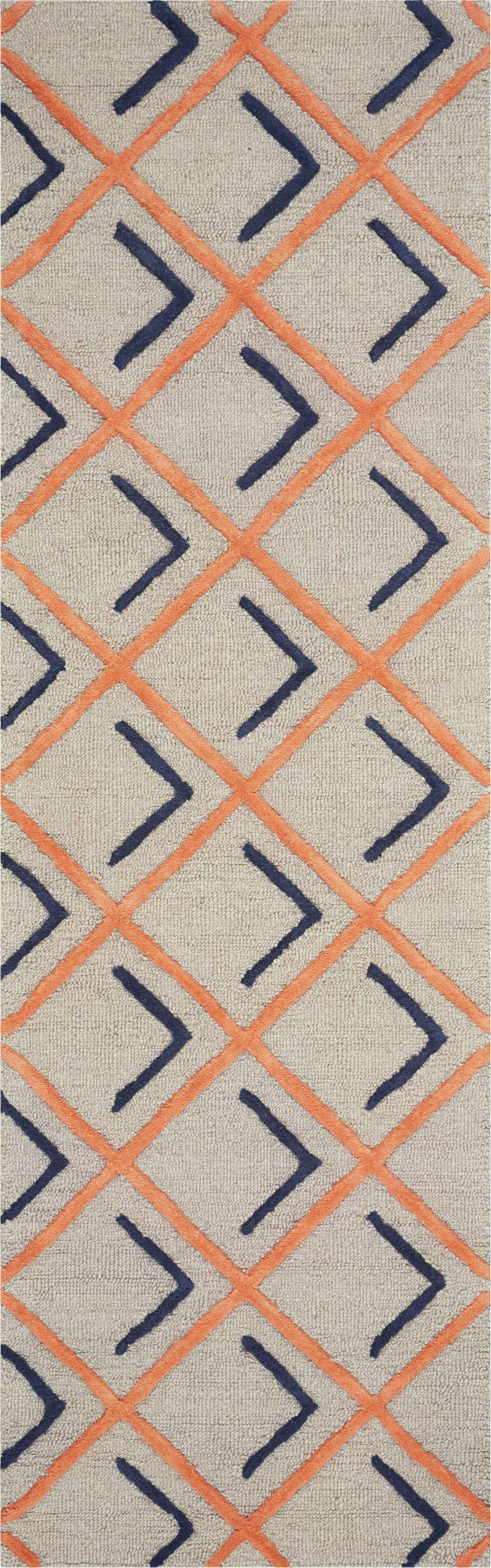 2'3 x 7'6 Runner Wool Tangerine Indigo Area Rug