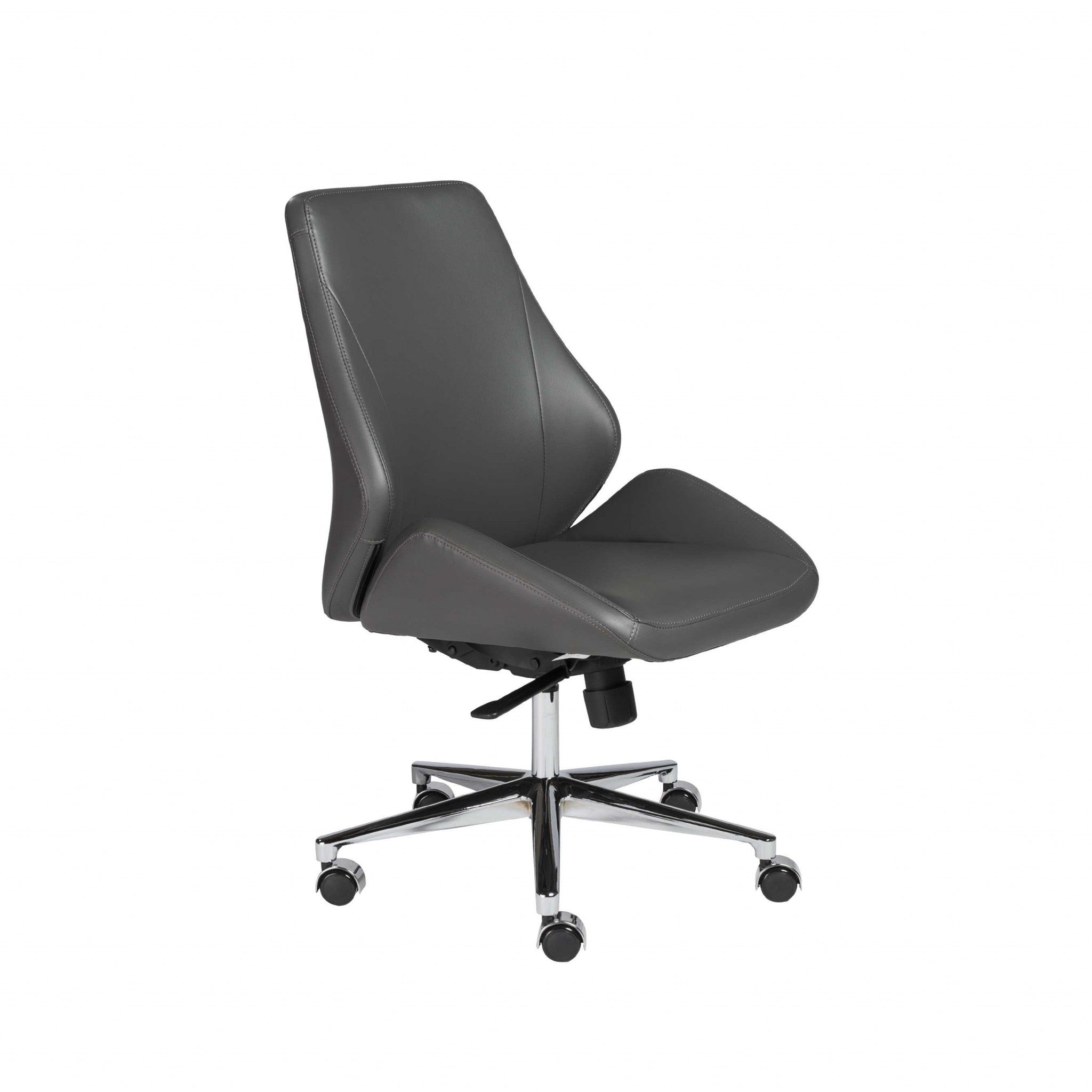 Armless Low Back Office Chair in Gray with Chromed Aluminum Base. Interesting how one chair can be ‘all-business’ and ridiculously comfortable all at the same time. The low, ribbed back has a lot to do with the comfort and the classic office design says this is one classy work environment. Thanks for stopping by. Have a seat.