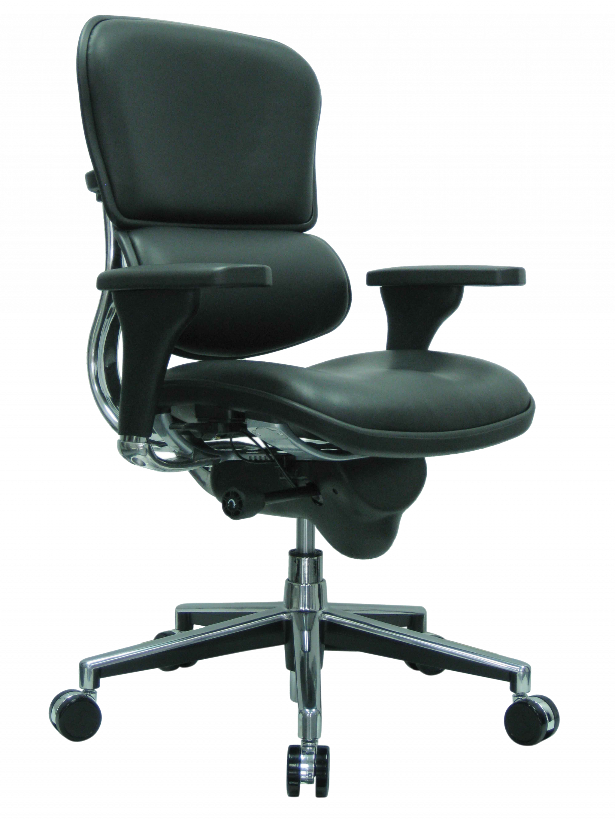 This modern office chair gives you absolute control of your seating position with adjustable seat, back angle, arms, height, depth and tilt mechanisms. Now you can work long hours without any form of discomfort, simply set it to a position that feels natural for you. The fully padded seat and back gives you the best cushioning effect, while the caster wheels provide mobility. Its superb leather upholstery and black finish creates a bold, professional look in your office. Dimensions: 26" x 27.5" x 40".