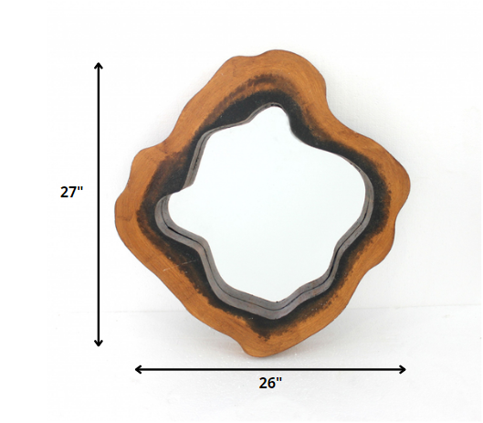 26" x 27" x 3" Brown Coastal Grotto Like Wooden Frame Mirror