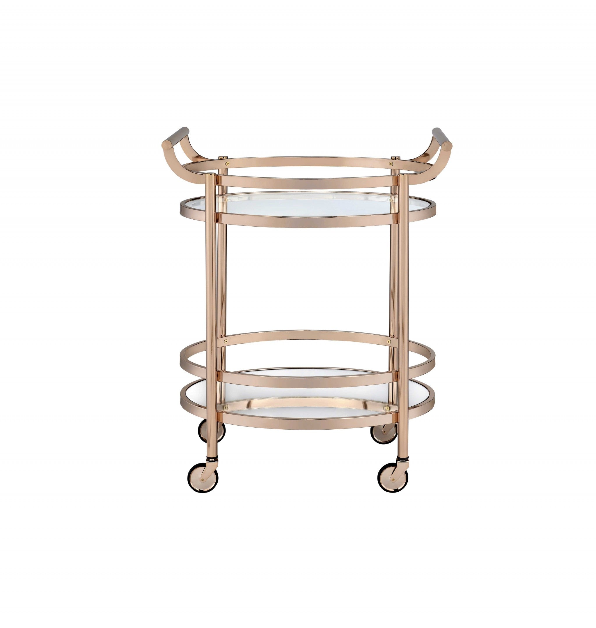 27' X 19' X 34' Clear Glass And Rose Gold Serving Cart