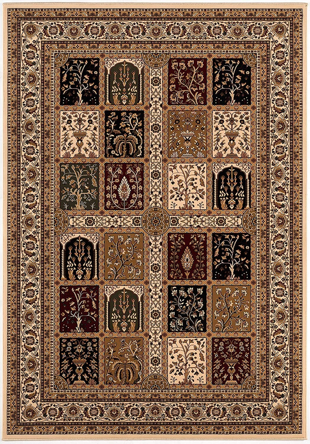 Conveying the aesthetics of traditional opulence, this Cream Traditional Decorative Runner Rug pays homage to Persian patterns with a touch of modern elegance. The geometric boxes in variegated shades of maroon, beige, black, and ivory are brimming with decorative accents for visual interest while the beige-toned ornate border captures the beauty in its frame. To keep the harmony between quality and comfort, this rug is made in Turkey with 100% olefin heatset fibers that speak of its durability and stain resistance to last for ages in high traffic areas of the home. Feels as luxurious as it looks due to the low pile construction that adds to the surface interest for a smooth and sumptuous underfoot. Leaning more towards traditional styling on the spectrum, this exquisite runner rug will be a great decorative accent to adorn your living space. 96” x 32” x 0.6”