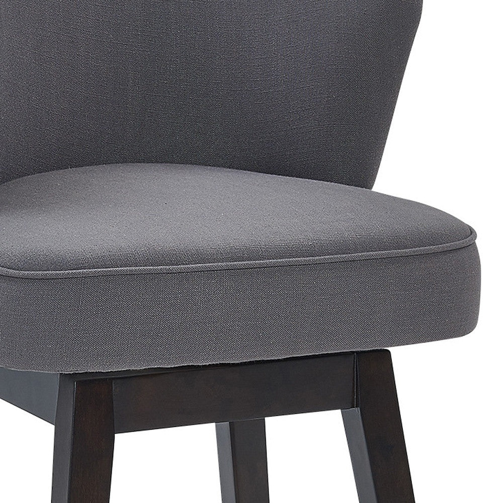 Every design marks an important moment in history and this 30" Grey Espresso Wood Fabric Swivel Bar Stool is your chance to be part of one. With comfort already guaranteed, it's important to prioritize style next, which you'll greatly enjoy because that's what this bar stool will bring to your home. Its retro modern style is well accented by the vertical channel stitching across the backside of the backrest. The high-density foam cushion is beautifully wrapped in a plush fabric upholstery that is durable enough to last for many years. You can also enjoy the full mobility provided by the stool's 360-degree swivel function while you place your feet on the convenient footrest featured on the wooden base. 43.5" x 22.5" x 23"