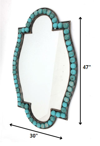 class, elegance and style are all embedded in this traditional dressing mirror with decorative metal frame. the featured metal frame is complement with numerous mini blue pearl decorations to perfectly fit into your home decor whether in the dressing room, bathroom, living room or dining room. our dressing mirror comes in a chic and classic design meant to add enduring beauty and sophistication to your space. its metal frame is sturdily built to give long-lasting support to the classy overall structure. the mini blue pearl decorations of this piece makes it the eye-catching package that is irresistible to watch. - traditional collection - metal frame - artistic shape - with numerous mini blue pearl decorations