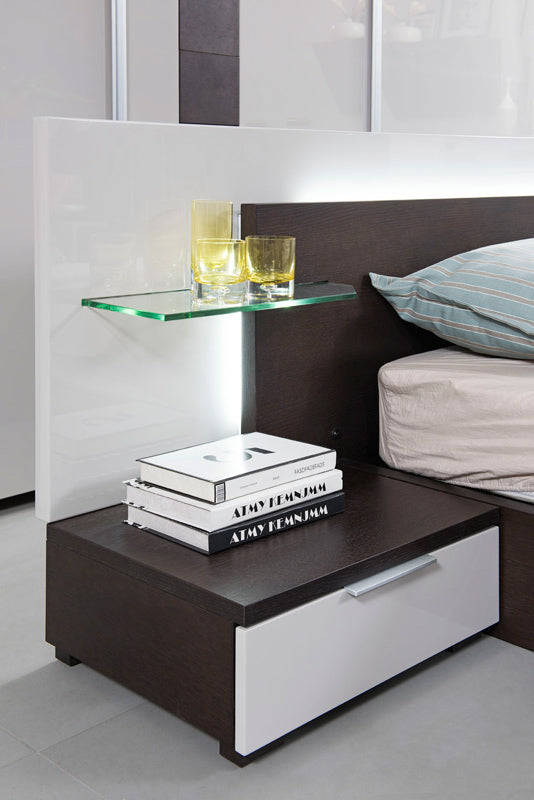 embellish your space with this sophisticated and elegant bed. its quality is high, and it has a marvelous design that will bring versatility and diversity to the look and feel of your home. this bed is made from hard-wearing veneer and mdf, which also contribute to its overall gorgeous appearance, while still giving you all the stability youll ever need. as for measurements, theyre 34 for height, 115 for width, and 86 for depth, and it weighs 430.5 . this lovely bed will be the perfect piece for any decor.