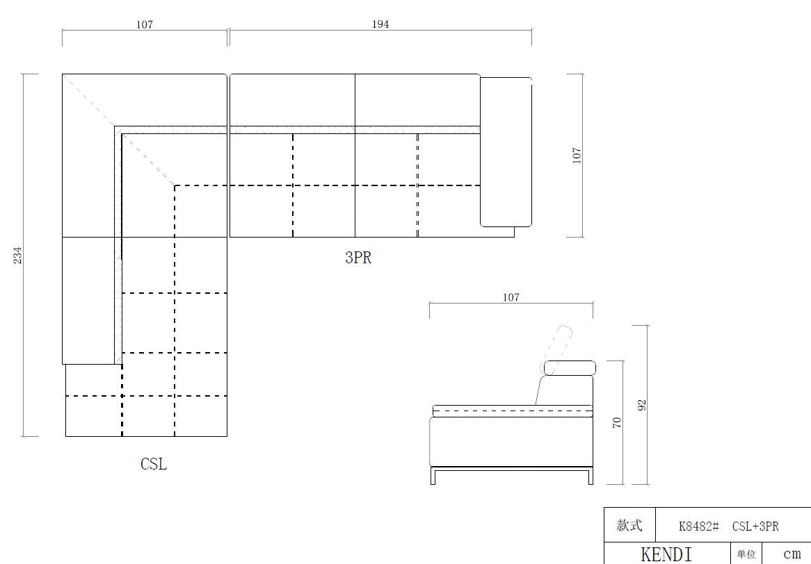 124" X 94" X 36" Twoto Tone Sectional RAF$2,007.02