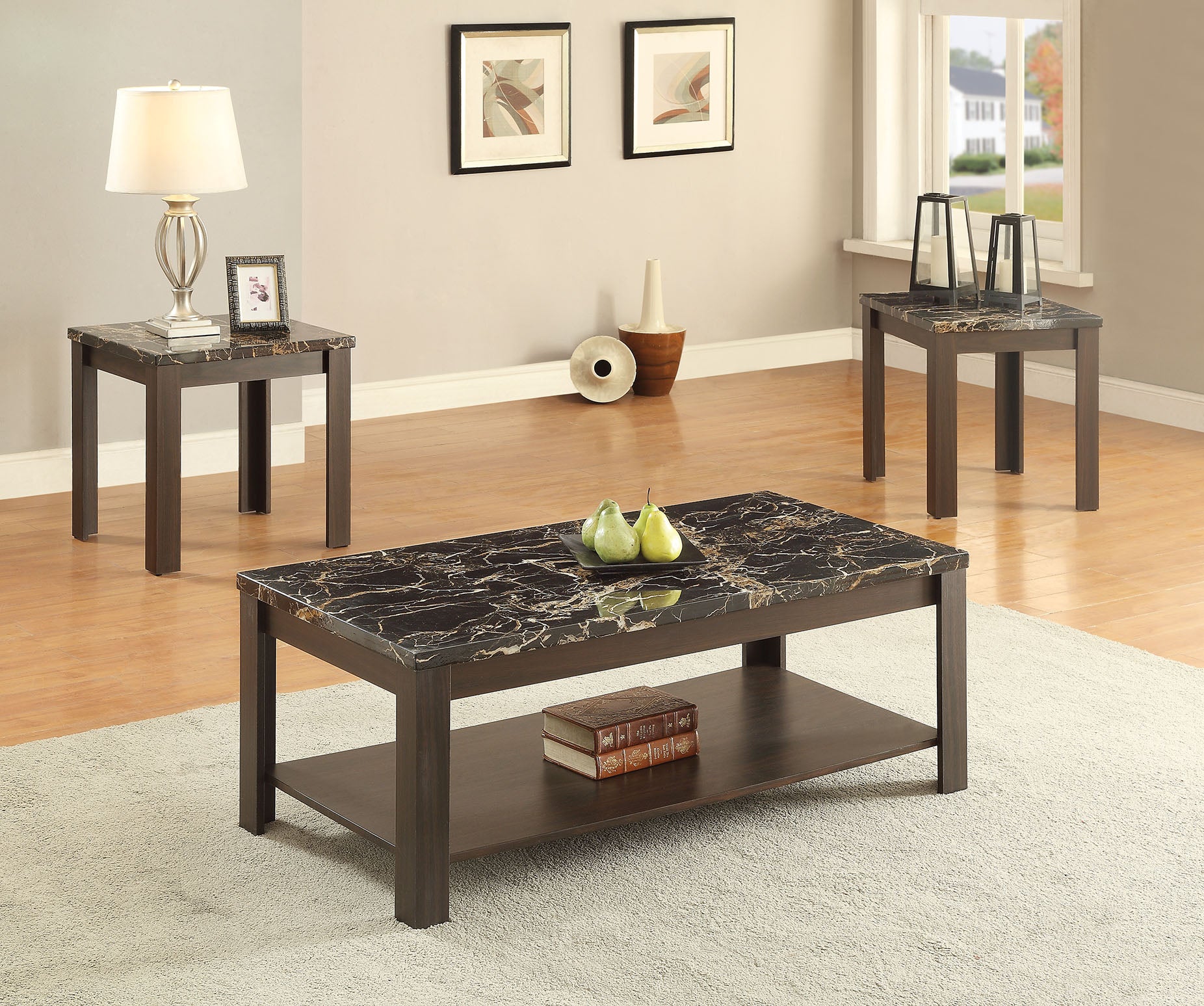 3Pc Pack Coffee/End Table Set, Faux Marble & Walnut - Veneer Faux Marble & Walnut