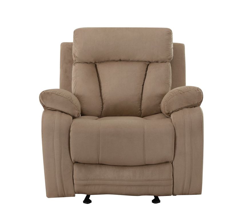 Bring both modern appeal and practicality into the look and feel of your home with this elegant and functional recliner chair. Plus, its exceptionally well-made. This chair is a high grade piece, which has a comfy beige microfiber upholstery and a steel base. It will definitely leave a fantastic impression on your friends and guests. Additionally, this chair features a recliner mechanism with a manual crank, which will ensure even more relaxation. It truly mixes luxurious rest with durability perfectly. To ensure this, it has a foam density of 2.4 for the seat and the arm, and the foot rest features a foam density of 2.0. The seat also includes a pocket coil with foam for added ease. To complete the lovely look, it shows off a gorgeous style ideal for the contemporary home. As for measurements, theyre 40" for height, 39" for width, and 38" for depth, and it weighs 77 . When you need to unwind and loosen up after a long day, this chair is the best you can find. It will fit in excellently with any interior, and would be a marvelous decoration for your home.