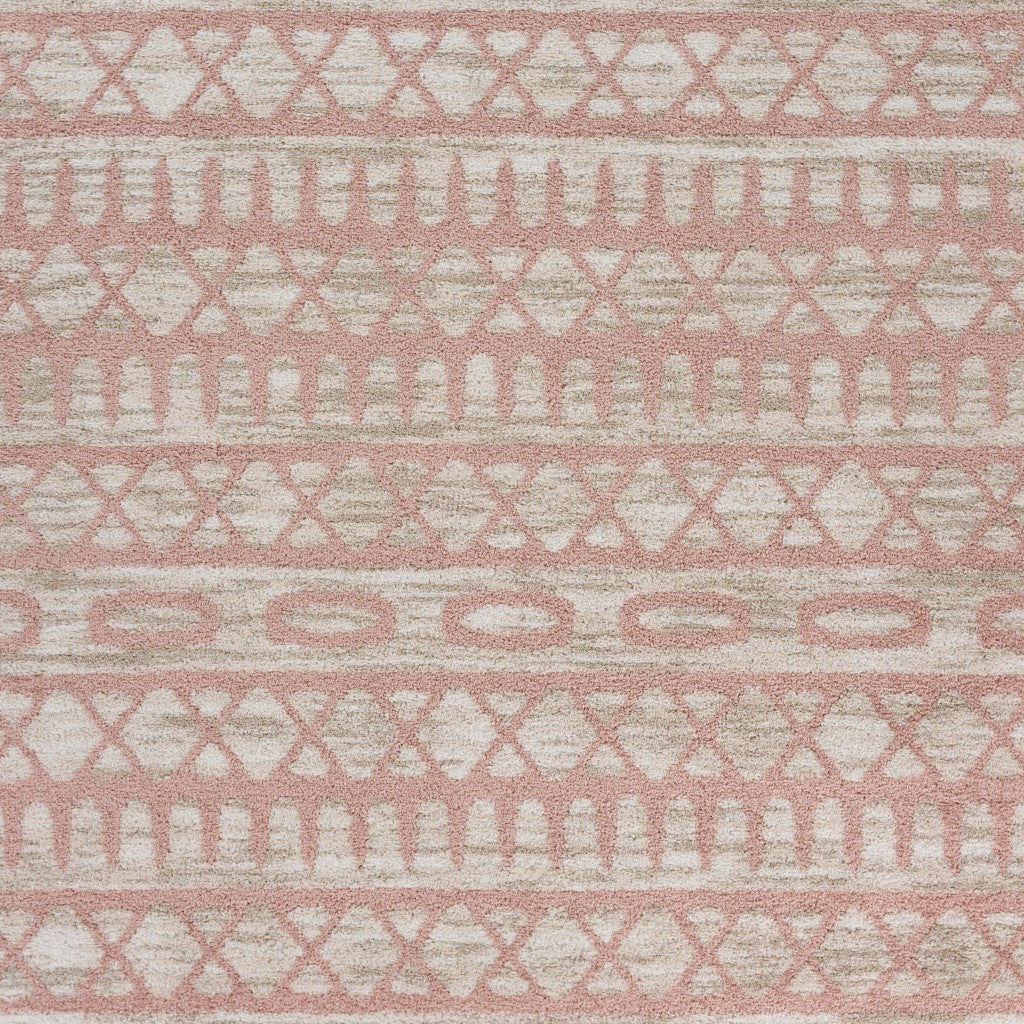Pleasing to the eyes with its subtle tones, this Blush and Beige Geometric Striped Area Rug will accentuate a bohemian vibe into your place with a touch of modern elegance. The asymmetrical geometric patterns in soft blush pink look harmonizing over the distressed beige-toned base. This rug is made in Turkey with 100% polypropylene material which is not only stain-resistant and easy to clean but also durable enough to stand up to areas with high foot traffic. The low pile construction adds to its smooth surface texture, making it an ideal piece for your bedroom, living room, foyer, dining area, or office space. Strike a bohemian cord into your living space with this beautiful area rug that is bound to blend in with a variety of interior decors. 62” x 86” x 0.36”