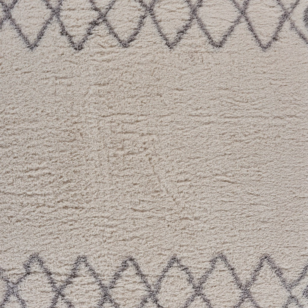 Bring a touch of bohemian charm and modern grace to your home with this Gray Geometric Bohemian Area Rug, which features on-trend hues in retro-classic styling. The trout gray geometric patterns draw a fine line of sophistication and simplicity over the dove gray base while the tassel on both ends accentuates a bohemian essence. Made in Turkey with 100% polypropylene which is known for its durability to withstand indoor elements while being stain resistant to keep its pristine look even after years of usage. The high pile construction adds to a cozy and comfortable surface texture for a layer of warmth under the feet, making it an ideal chocie for your living room, bedroom, or playroom. Give your living space a cozy and homey feel with this plush area rug introduced on the floor. 63” x 84” x 2.5”
