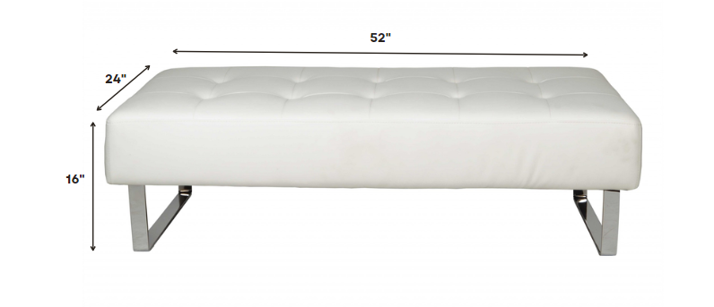 embellish your space with this sophisticated and elegant bench. its quality is high, and it has a marvelous design that will bring versatility and diversity to the look and feel of your home. its contemporary style will surely be a splendid decoration, and its polished finish and white color will animate your space. this bench, which is made from high quality faux leather, which also contribute to its overall gorgeous appearance, while still giving you all the stability you?ll ever need. as for measurements, they?re 16? for height, 52? for width, and 24? for depth, and it weighs 38 . this lovely bench will be the perfect piece for any decor.