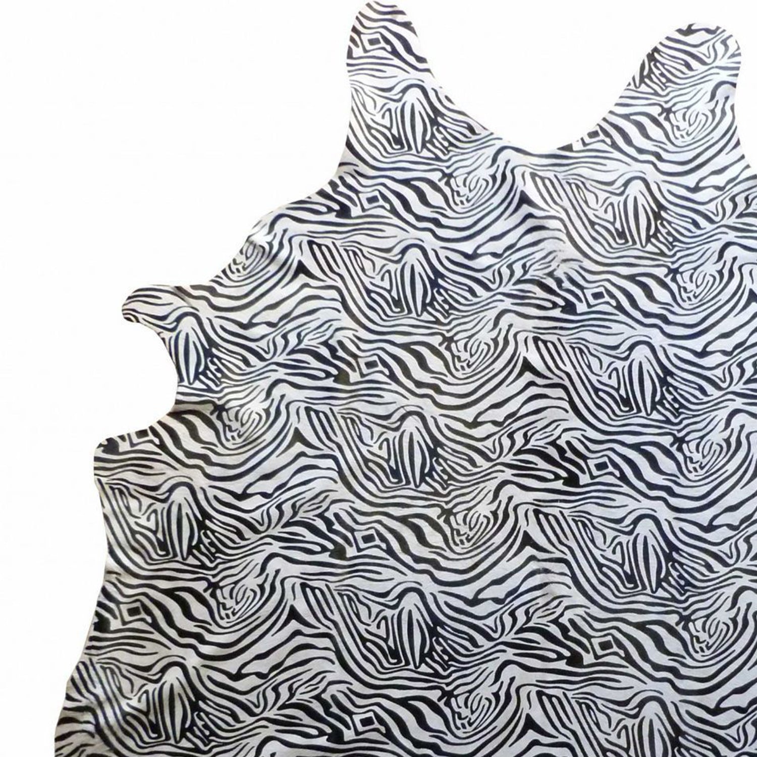 6 Ft Black and White Stenciled Baby Zebra Cowhide Rug