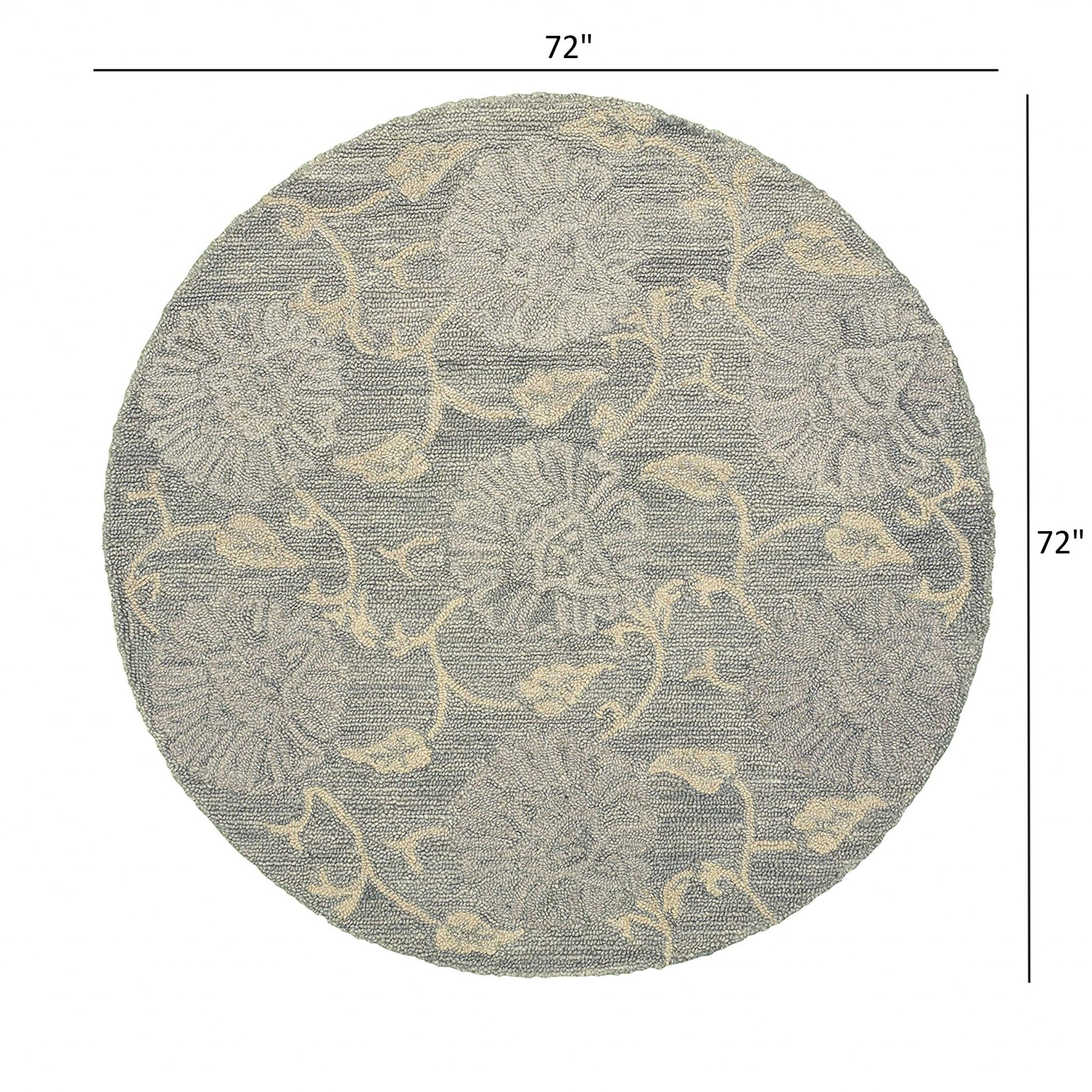 The understated elegance of this Gray Floral Vines Round Area Rug will be a stylish addition to blend in with the aesthetics of your contemporary home. Featuring a distressed trout gray base with intricately detailed floral vines in dove gray and beige adds to an alluring accent for visual interest. Made to last long for years, this rug is handcrafted with 100% virgin wool for enhanced durability, softness, and the ability to wick away moisture and let your skin breathe. The soft pile construction makes it an ideal piece to flaunt in any high-traffic areas without worrying about wear and tear. Combining neutral tones with attractive patterns, this area rug will complement a wide variety of modern, traditional, and contemporary style of decors. 72”