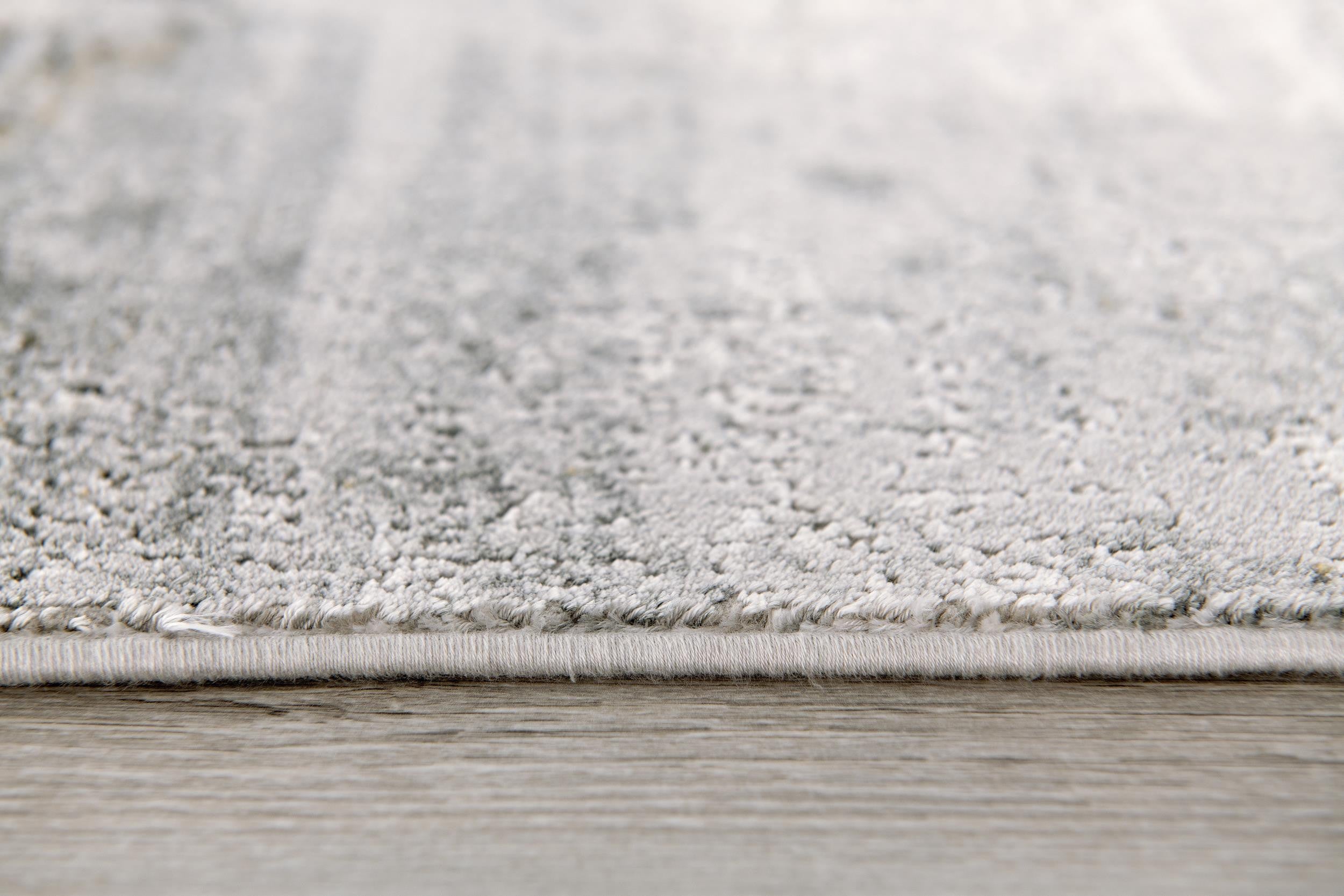 Sleek and sophisticated in neutral hues, this Gray Distressed Prism Modern Area Rug upholds the true essence of contemporary styling in patterns and palette. The prism patterns in the variegated shades of grays and slight tints of beige are given a distressed effect for a pleasantly worn appearance. Made in Turkey with viscose and polyester mix to ensure durability and stain resistance while giving off a glossy sheen for visual interest. The low pile construction adds to smooth surface texture for a velvety feel under the feet, making it a great choice for your bedroom or living space with heavy foot traffic. Enhance the aesthetics of your modern living space with this trendy area rug that will make your home feel complete without being too loud. 114” x 78” x 0.4”