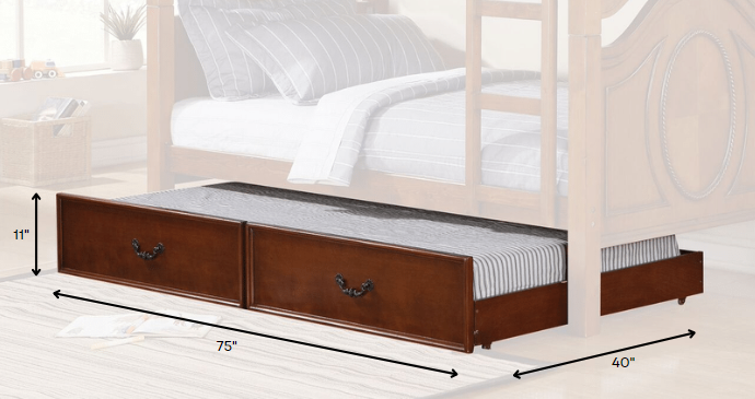 75' X 40' X 11' Twin Cherry Pine Wood Trundle