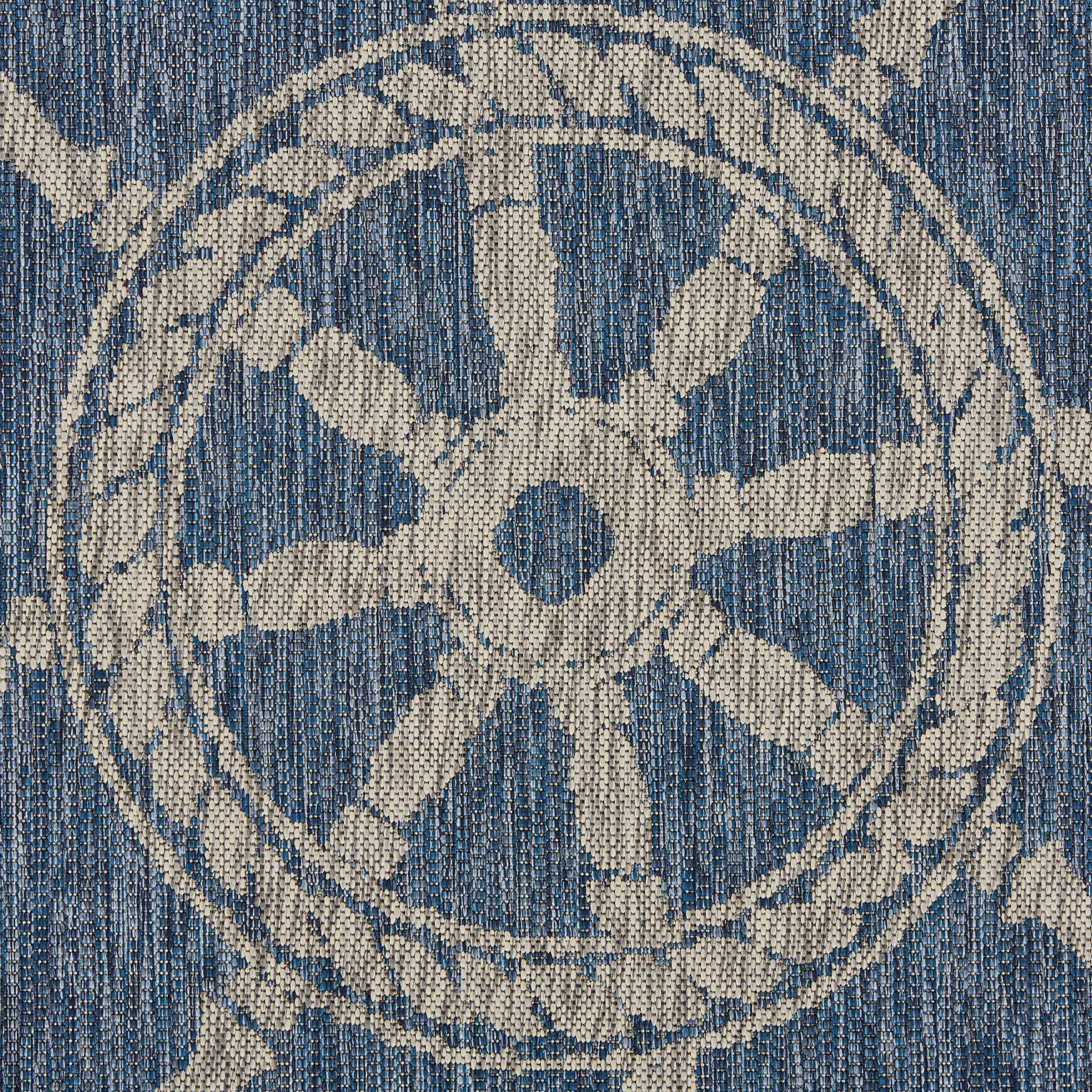 Flaunt your love for nautical decors with this Navy Ship Helm Indoor Outdoor Area Rug that will enhance the aesthetics of your home and patio with a maritime vibe. The sophisticated navy blue base is accented by the gray-toned stripes and a ship help in the middle to strike the eyes. Machine-made in Turkey with durable polypropylene fibers to handle extreme messes and scratches of the home both inside and out while being stain-resistant to ensure a perfect look for years. The flatweave construction makes this peace an ideal choice for high-traffic areas due to the soft and smooth surface texture that can be easily cleaned and maintained. If you’re looking for fashion and function in a simplistic design, this area rug is the one to grab!. 93” x 113” x 0.35”