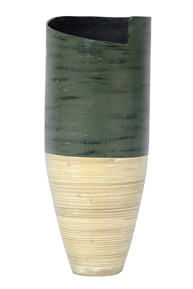 9" X 9" X 20" Distressed Green & Natural Bamboo Bamboo Spun Bamboo Vase