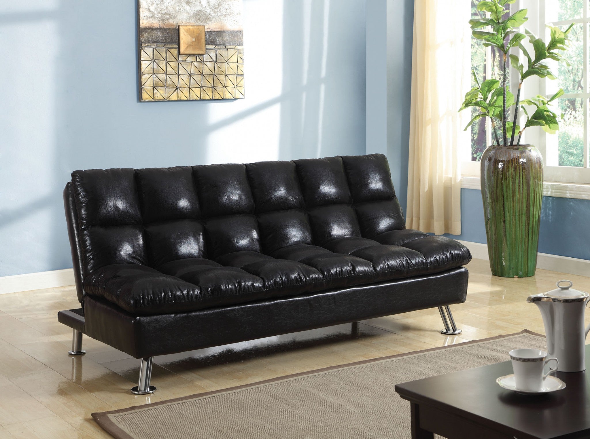 The collection features a modern-contemporary look, ideal for those wanting a cozy but sleek furniture piece to add to their living room. The adjustable sofa for this collection comes in a black polished microfiber or burgundy poly synthetic leather, tufted cushion and chromed metal legs which complete the contemporary look. Its adjustable feature allows to switch from a sit to sleep position for additional comfort. You will not find a better set that fits both style and comfort like this.