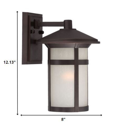 Adding an element of unique design to any exterior walls of your house will be easy with this Antique Bronze Round White Glass Wall Light. The wall bracket has a simple rectangular shape to which there is a simple cast aluminum rod attached. The main body of the light is attached to this rod. There is a sloping roof shape at the top of the light which then extends down to create a simple frame colored to an antique brown finish. Inside the frame there are white glazed glass panels creating the effect inspired by Shoji doors. Use this light on its own around your home or you can use a pair around your front door. 12.13" H x 8" W x 9.25" D