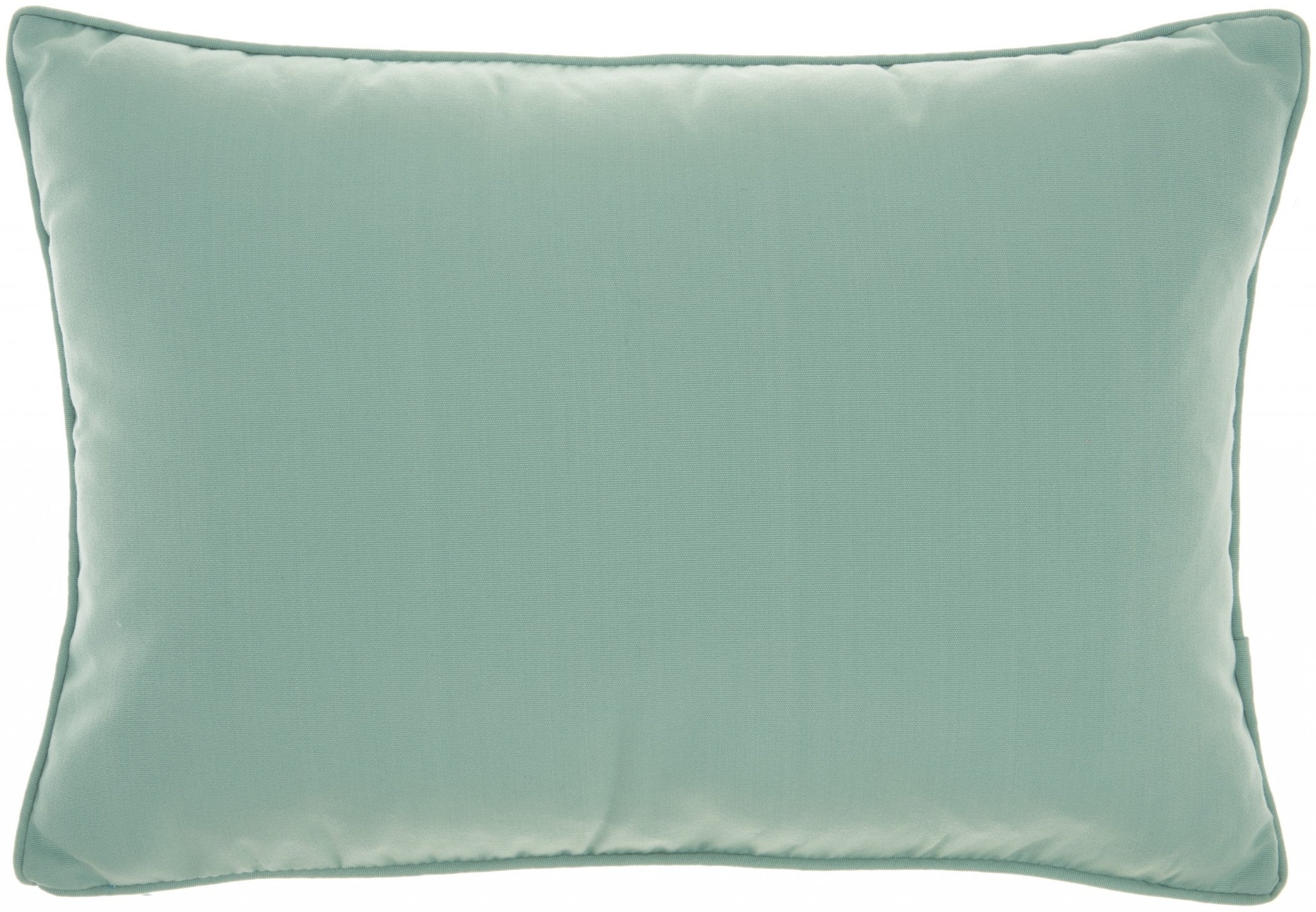 Add a bold new layer to your contemporary and modern aesthetic with this Aqua Indoor Outdoor Lumbar Throw Pillow that embodies casual elegance and prestige. The smooth aqua blue is welcoming and pleasant to the eyes, making it a perfect piece for both the indoors and outdoors in your home. The immaculate look is achieved with the use of handmade smooth 100% acrylic fabric that is perfect enough to look as good on your sofa as it does poolside on your patio. The super fluffy polyester fill and the rectangular lumbar shape makes for an inseparable experience. The unique color makes for a perfect match for dark shades and pastel colors, helping bring the whole contemporary and modern look together. 14” x 20”x 5"