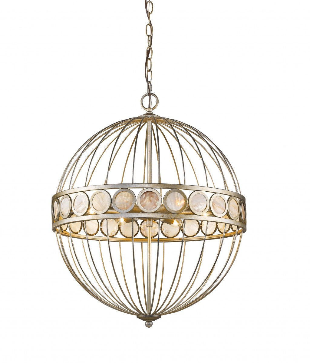 Aria 6-Light Antique Silver Globe Pendant With Mother Of Pearl Accents
