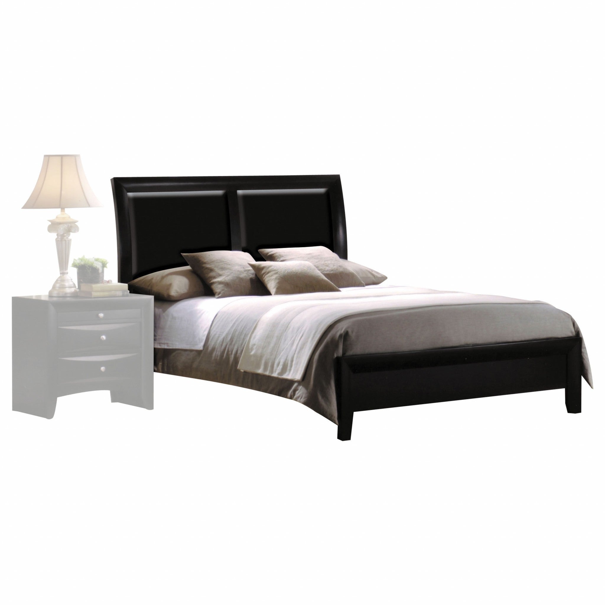 Black Leather Finish King Bed wiith Padded Upholstered Headboard