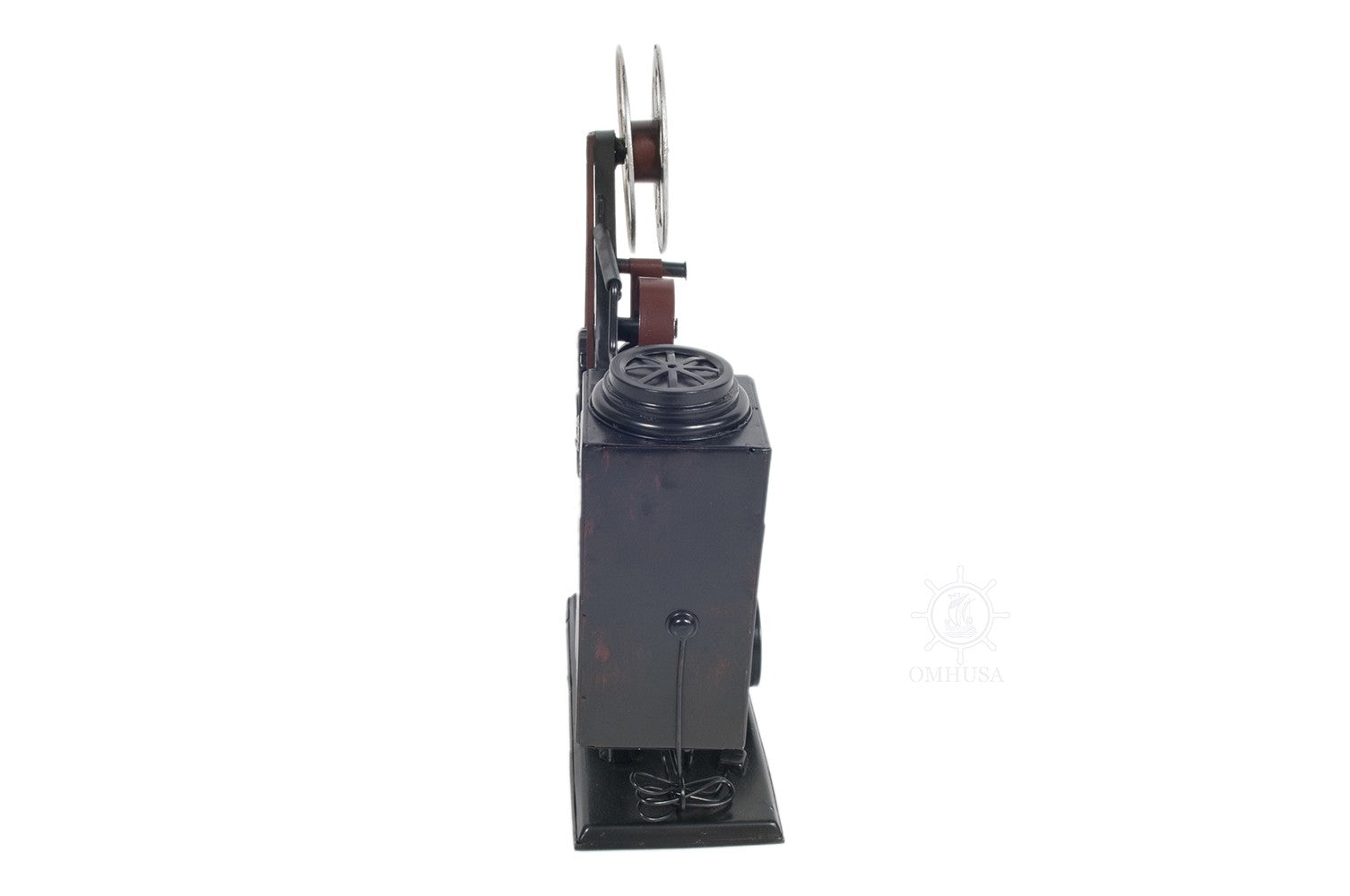 Add some striking desk or shelf décor to your space with this c1930s Keystone 8mm Film Projector Model Sculpture. This Keystone 8mm Film Projector Model R-8 model is meticulously hand crafted out of tin to look like the real thing. It features many authentic details such as the Keystone case, intermittent sprocket, sound head, two-reel system, lens, inching wheel, bottom stand, and focusing knob. A fun conversation piece, this model camera makes a cool accent for your space. 14" x 11.5" x 4"
