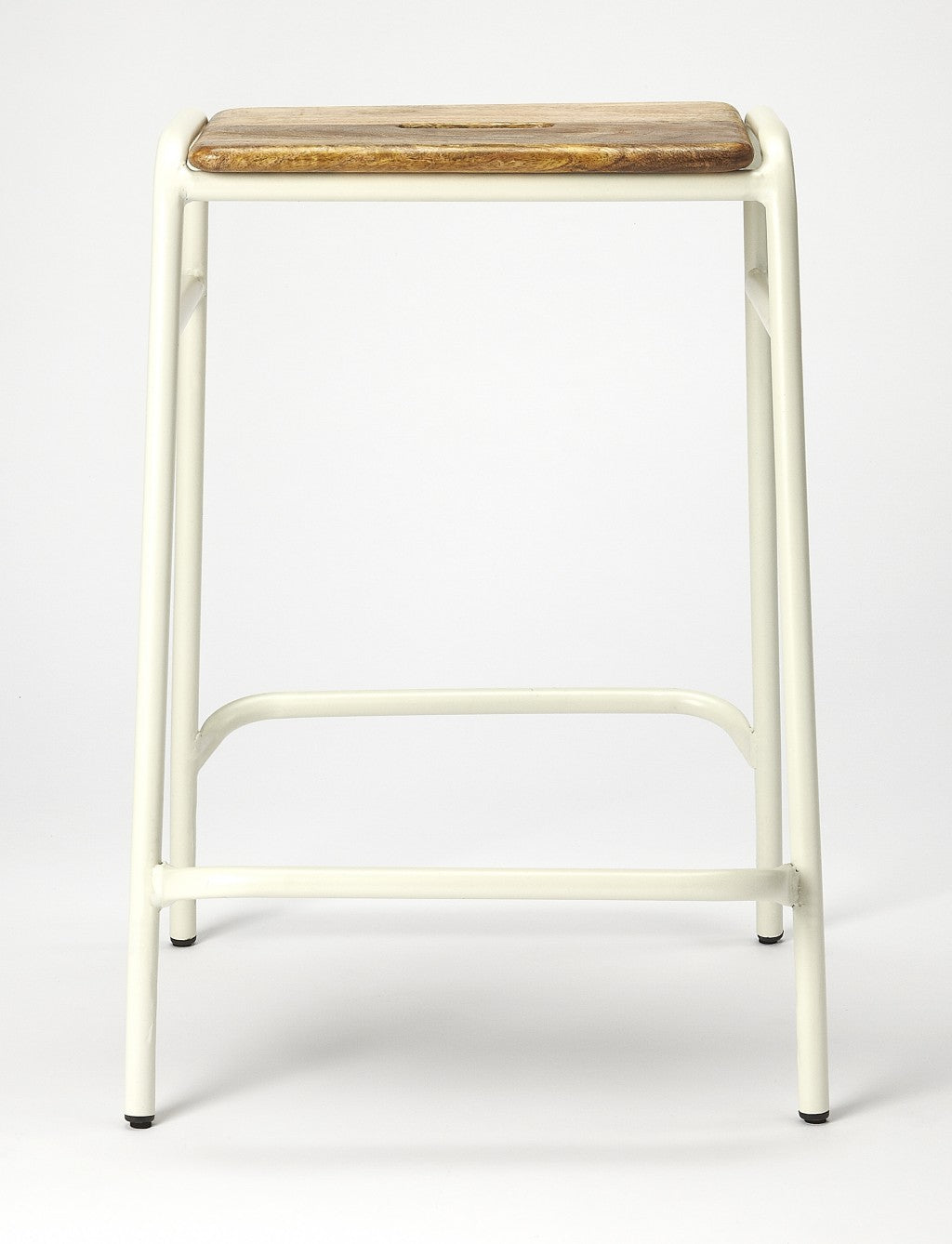 Smooth with soft edges all over the Classic White Counter Stool is a perfect addition for your home. The bent iron has been structured in a manner to provide side handles which makes it easy to move around for extra seating options. Paired with a decent footrest it is ideal for your kitchen counter top too. 24" x 15.75" x 10"
