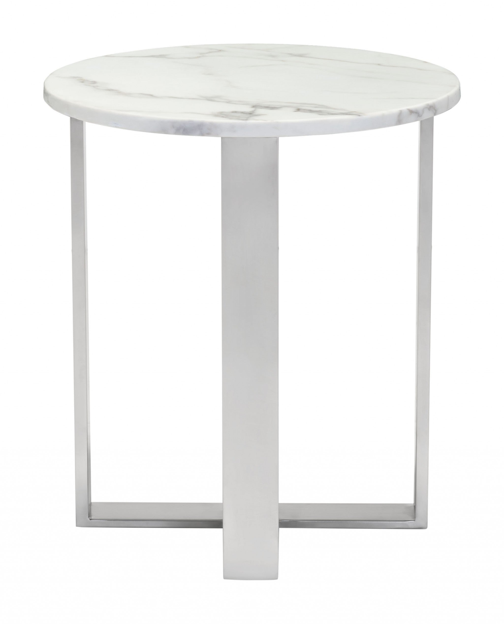 Gorgeous from every angle the Designer's Choice White Faux Marble and Steel End Table will be a great addition flanking the sofa bed or chair in the living room. Great for display this side table is the perfect size. A square slab of faux marble sits atop an open and airy gold geometric base making this table gorgeous and sophisticated yet not stuffy. 20.5" x 18.1" x 18.1".