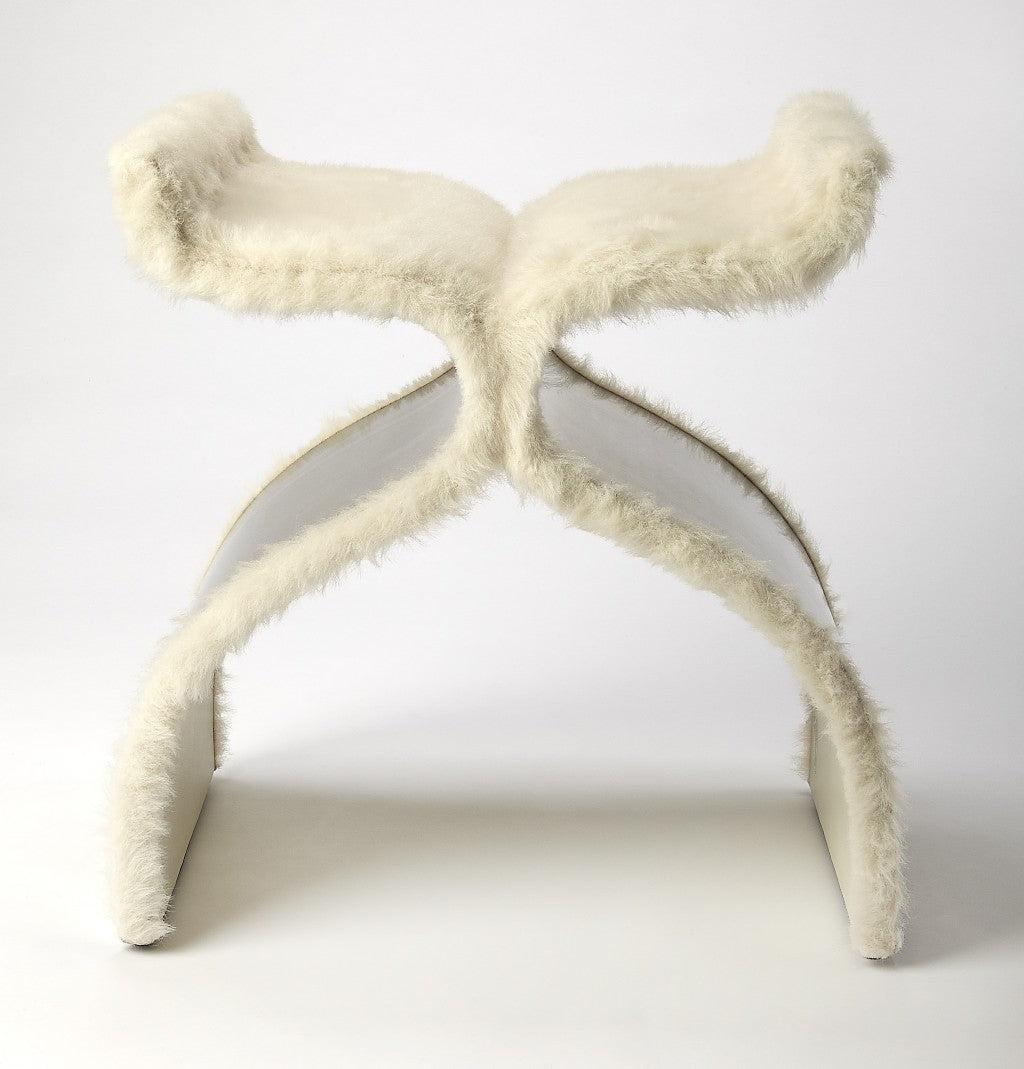 The super unique design of our Far Out Ivory and Chrome Faux Fur Stool will make you the owner of a furniture piece that you will be hard pressed to find in anybody else's home! This fabulous stool brings so much fun and visual interest. The curvaceous stainless steel base houses luxuriously soft and premier off white faux fur that makes this stool ooze with glam and excitement. A great conversation piece to accent your contemporary space. 22.5" x 20" x 15".