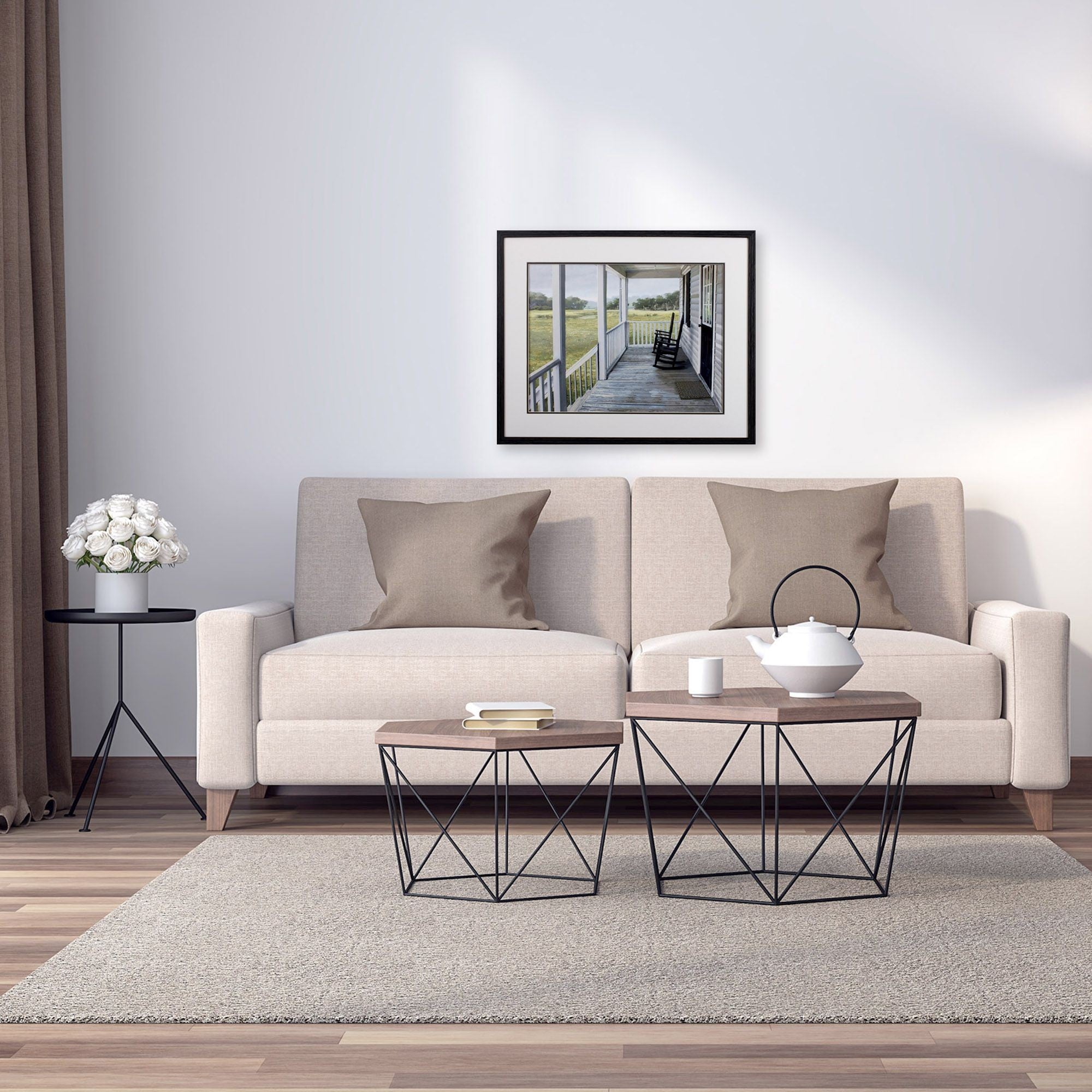 Farmhouse Back Porch Scene Wall Art is a great way to bring that country feel into your space. Triple matted and framed under glass in a textured black frame, this farmhouse look will be a great addition to any living room, bedroom, entranceway, or office. 26" x 32" x 2".