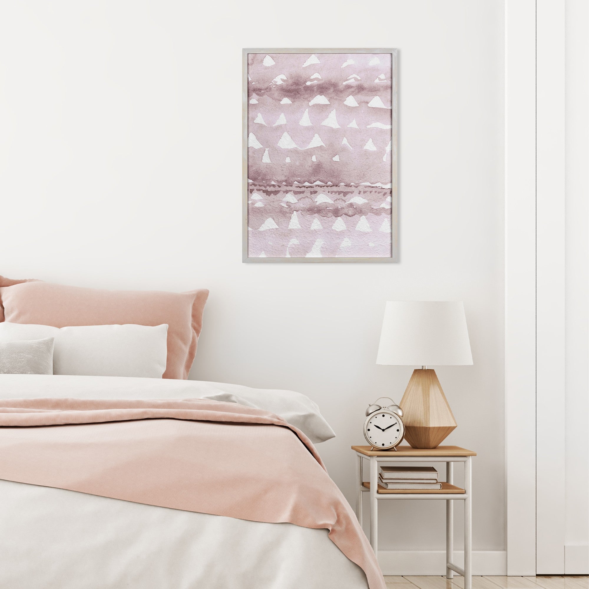 This Framed Watercolor Pink Triangle Wall Art will be the perfect pop of color for your walls. The frame is made from solid wood and is finished with a light gray varnish on top. Inside the wooden frame there is a full sized abstract watercolor painting of pink and white triangles. The different strokes and textures of the painting add depth and dimension to the whole piece. You can use this frame anywhere in your home and it will elevate the whole space. 27.6" H x 19.75" W x 1" D