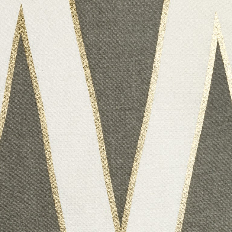 Intensify a sense of modern sophistication into your living space with this Gray Ivory Geometric Linework Throw Pillow that looks visually stunning to increase the aesthetic value of a room. The complex geometric linework in ivory with gold foil overprint around the edges gives a glamorous touch to the design over the trout gray base, making this pillow an eye-catching accent to add to any modern or contemporary home. Perfectly crafted with high-quality cotton, it has a smooth surface texture for a soft and cozy feel while ensuring optimum durability to last for years. This throw pillow features matching cotton back with a hidden zipper closure for easy washing, and the knife-edge emphasizes a crisp and clean look, making it suitable for a variety of interior styles and decors. If you want to bring neutral shades amidst your colorful interior, this geo pattern throw pillow is an ideal pick for you. 20” x 20” x 6.25”