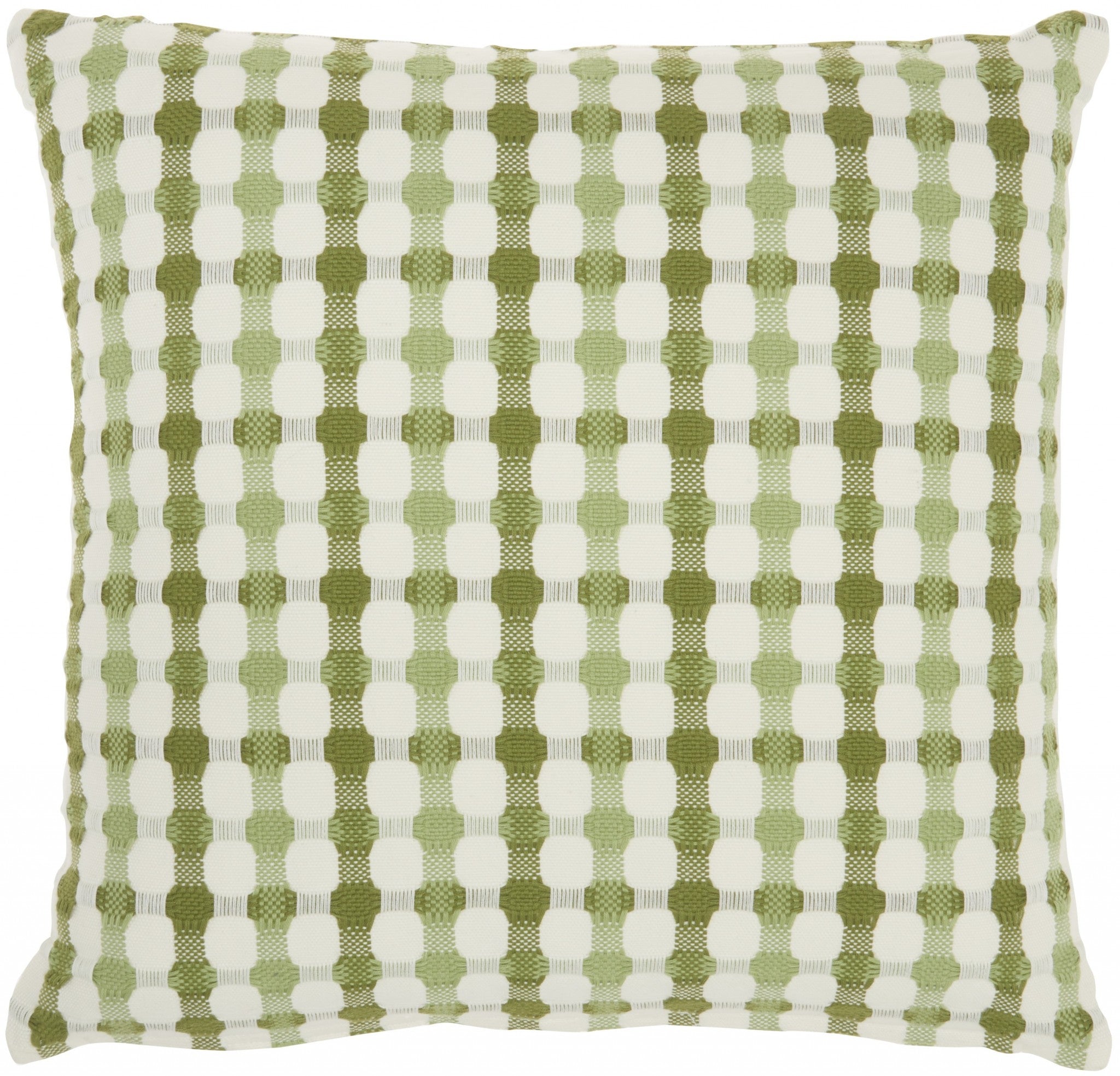 Induce a sense of comfort with the alluring design of this Green and Ivory Gingham Pattern Throw Pillow that exerts a relaxing and safe feeling in its simplicity. Hosting a pleasant Gingham Pattern made with an array of shades of green on top of a soft touch subtle ivory tone. The farmhouse look is made to last with the use of high-grade 100% cotton fabric. Make your living space the warmest and welcoming it can be. 18” x 18” x 5”