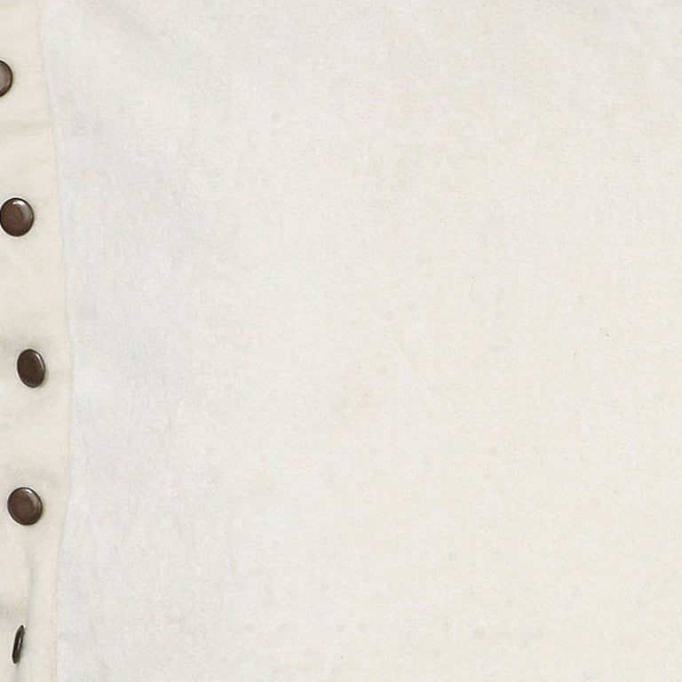 Emphasize modern elegance into your living space with this Ivory Embellished Flange Throw Pillow that will add a sense of sophistication to your room with a traditional charm. The solid ivory base adds a contemporary appeal to the piece while the bronze-colored grommeted embellishment on the flange gives the pillow an antique appeal. Constructed with the premium quality softest cotton velvet, the pillow is very soft and smooth to the touch and the corresponding solid cotton back has a concealed zipper closure for a seamless finish and ease of washing. This down-filled pillow is airy-soft and plush by nature, making it a perfect piece of warmth and comfort. Indulge in a peaceful atmosphere with this throw pillow that will easily complement your contemporary or modern interior. 18” x 18” x 6.25”