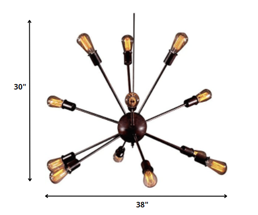 Stand out from the crowd and illuminate your living space with this fantastic steampunk chandelier. This 12-light fixture provides multidirectional coverage to infuse any room with a comprehensive glow. With a cool and unusual design, this contemporary bronze chandelier makes a spectacular statement piece, imparting an intellectual and industrial vibe and inspiring conversation amongst your guests. This chandelier's multidirectional lights give off intense, spherical light for maximum room coverage, and its bronze finish complements many existing color palettes in the home. With classic Edison-style bulbs, this fixture adds a funky, industrial vibe to any room and is the perfect coordinating piece for a steam punk enthusiast.Setting: IndoorFixture finish: BrownNumber of lights: Twelve (12)Requires twelve (12) 60-watt bulbs (not included)Dimensions: 30 inches high x 38 inches wideAssembly Required.This fixture does need to be hard wired. Professional installation is recommended.