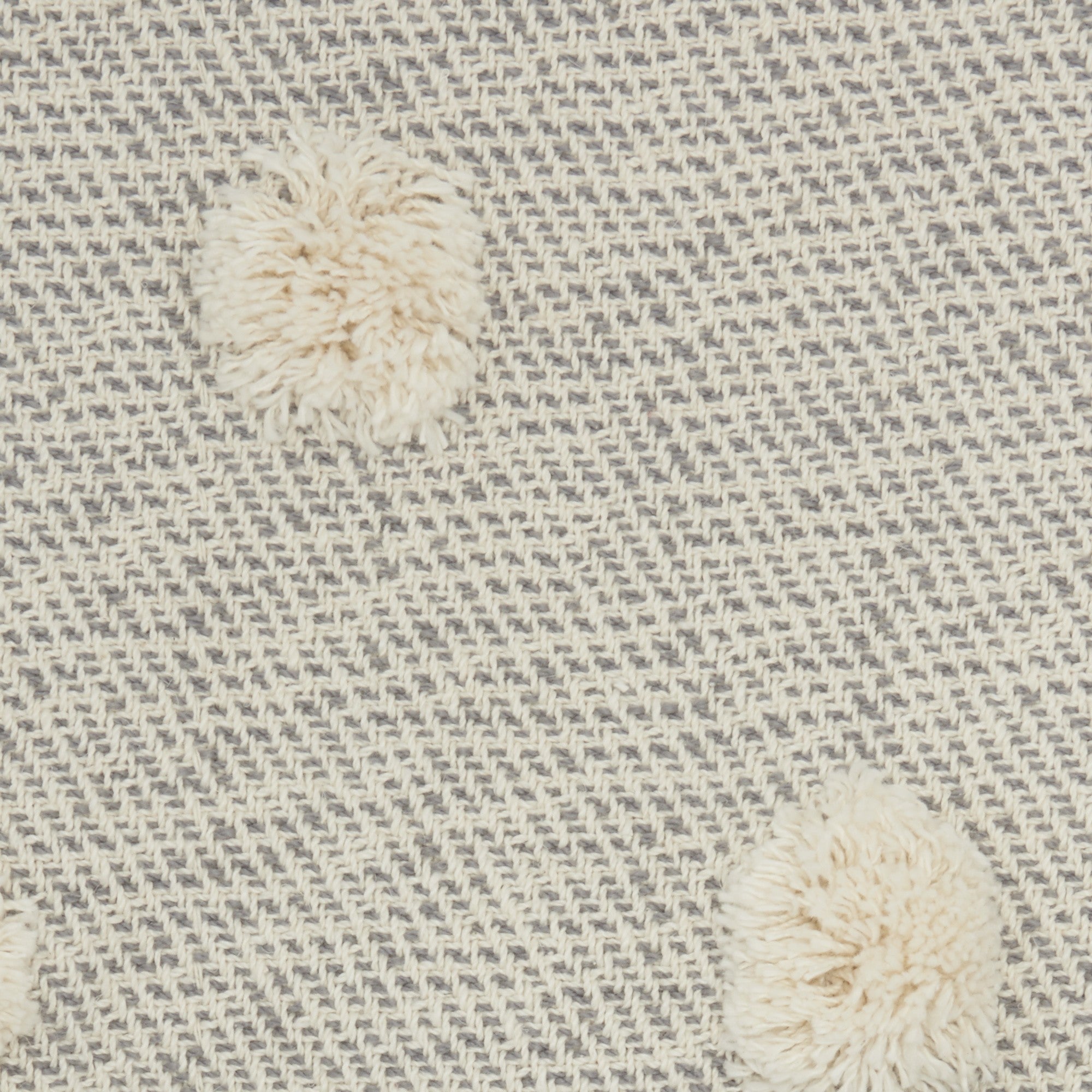 A decorator's dream, this gorgeous Boho Light Gray and Ivory Big Pom Cotton Throw Blanket will add designer coziness to your space in an instant. This handmade incredibly soft cotton blanket has a delightful weave that incorporates ivory and color for just the right design. There are large circular 3D super soft Ivory cotton poms sewn on that give this throw a unique and high end touch. The neutral coloration makes this accent easy to style and place in most any interior. Warm and soft to be used as a blanket or decorative accent drapped over your favorite chair, couch, or bed. 0.5" x 50" x 60"