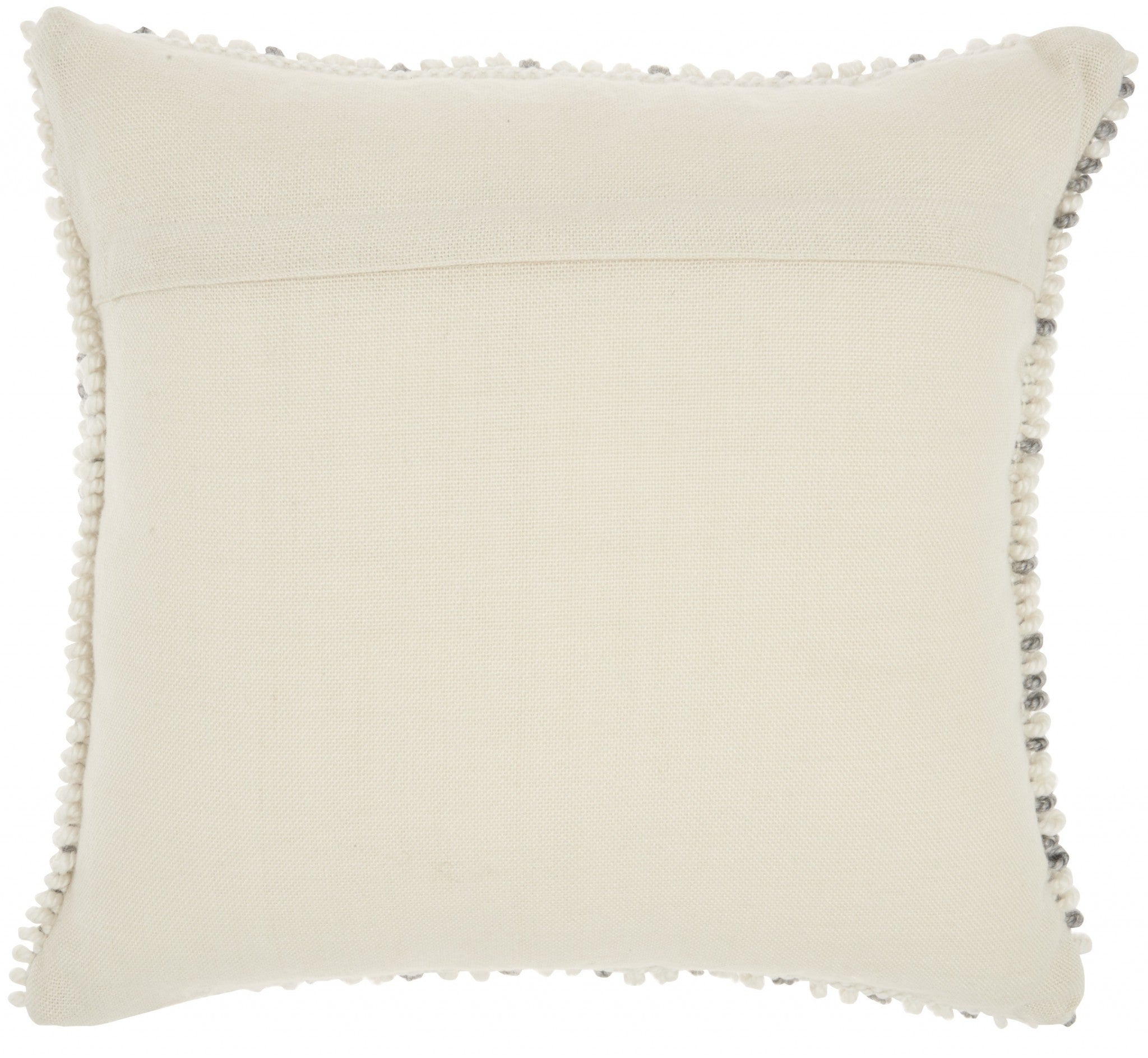 This Light Gray Dotted Throw Pillow is the perfect way to add some comfort and style to your bed or your couch. This pillow has a square shape and is covered in a textured white and light gray dotted fabric. The fabric has a fluffy thread feel to it which makes it that much more comfortable to use. This white fabric has light gray dots in a random pattern all around the front which gives it a unique look. You can use this throw pillow to elevate the look of any seating space in your home no matter what colors or decor styles you already have because of its simple design and neutral colorway. 5" H x 18" W x 18" D