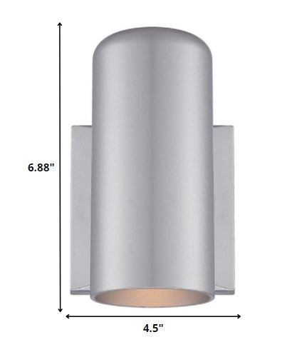 Enhance your lighting setup with this Minimalist Brushed Silver Wall Sconce. This wall sconce has a simple square wall bracket which has a smooth brushed silver finish on it. On top of this wall bracket the main body of the light is attached. The main body has a rounded thin cylindrical shape which is open from the bottom to let the light shine through. This simple brushed silver light sconce will elevate the look of any space you use it in. The wall bracket looks seamless against the wall and the main light add the perfect simple design touch to any space. 6.88" H x 4.5" W x 4.63" D