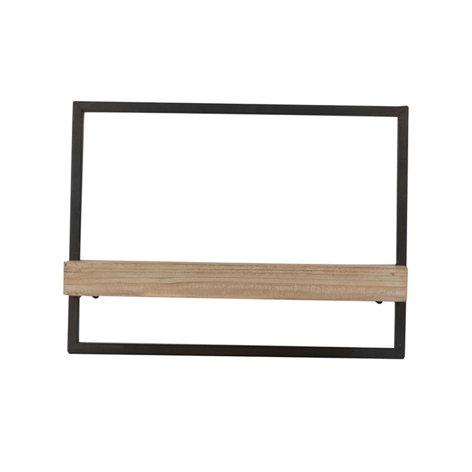 Despite the simple and sleek design, this Minimalist Modern Natural and Black Wooden Wall Shelf will make a bold industrial statement in the room with its neutral hues and unique layout. Featuring a soft natural toned wooden shelf with a medium-stained finish supported by a matte black iron frame that will draw the eyes when mounted on the wall. Crafted from iron and fir wood for a sturdy built that can hold substantial weight and last for a long time. This one-of-a-kind wall shelf will be a practical accent for showcasing decorative items, framed photographs, or cascading houseplants to enhance the beauty of the room. 11.8” X 15.7” x 5.9”
